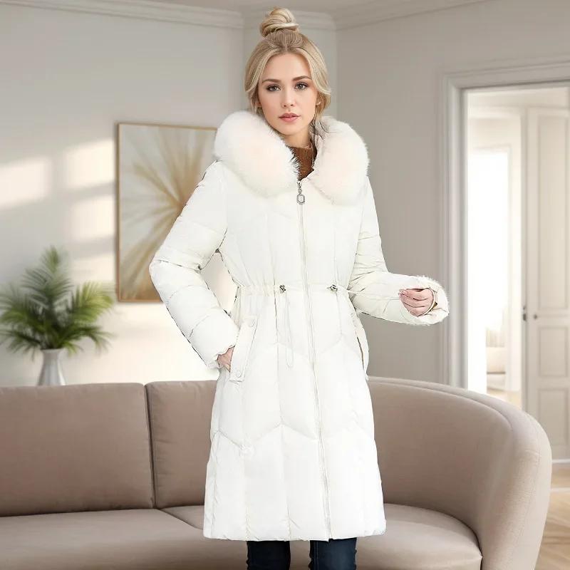 Зимние женские стеганые куртки средней длины, модные, с капюшоном, с большим меховым воротником, свободного кроя, толстые, с хлопковым наполнителем, приталенные.