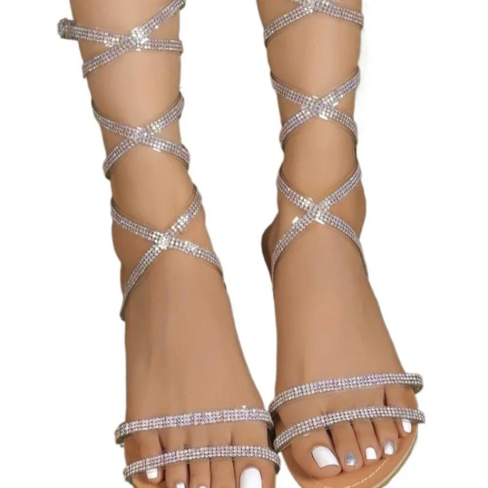 Женские сандалии на плоской подошве в сочетании с современными сандалиями со шнуровкой Crystal Cross Женская обувь на распродаже 2024 Модные женские сандалии
