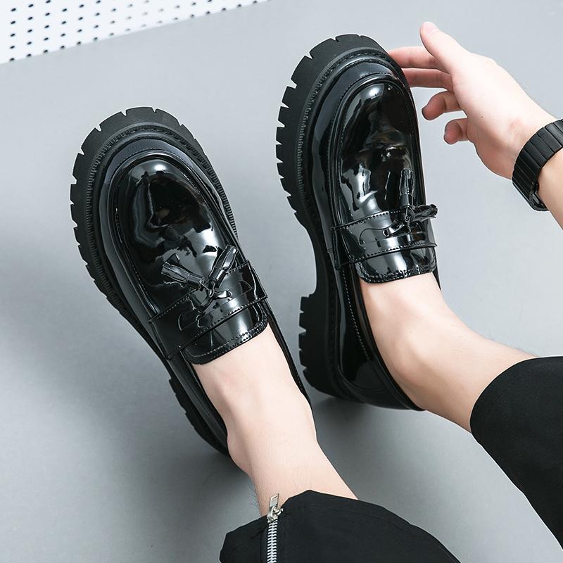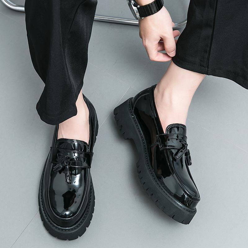 Черные новые модные мужские туфли-лоферы с кисточками для вечеринок и свадеб, мужская обувь на толстой подошве, удобная дышащая мужская обувь