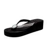 Тапочки на танкетке с клипсой на носке, женские летние босоножки на платформе с блестящими кристаллами 2024 года, женские, размер плюс 42, легкие шлепанцы для улицы, скользящие