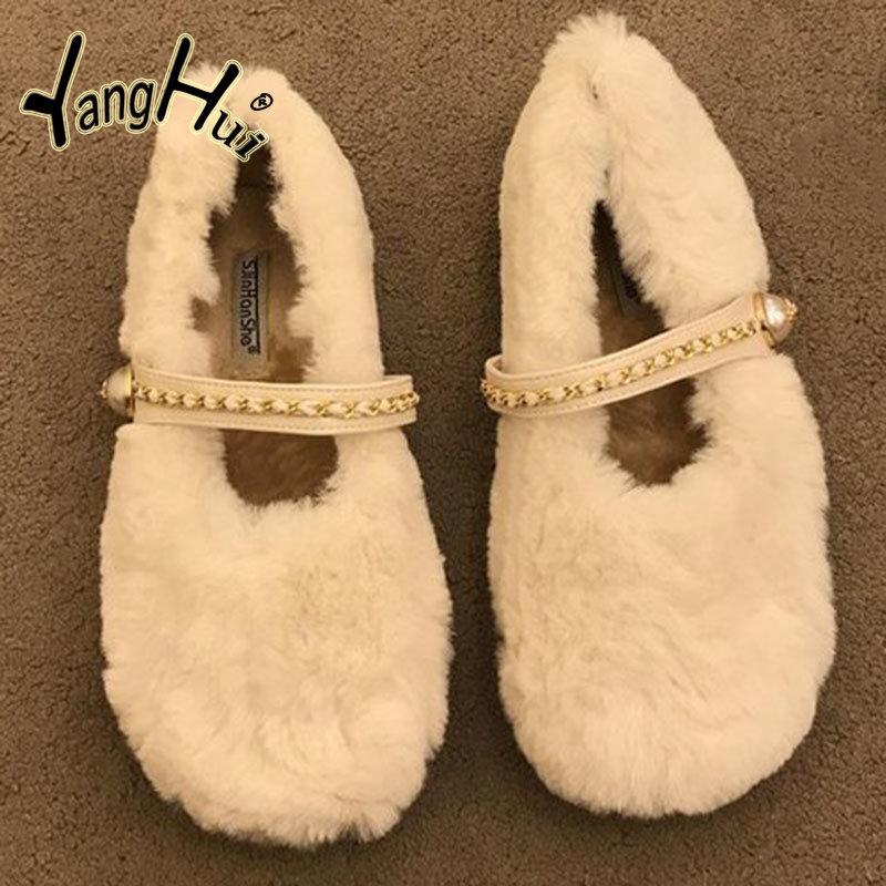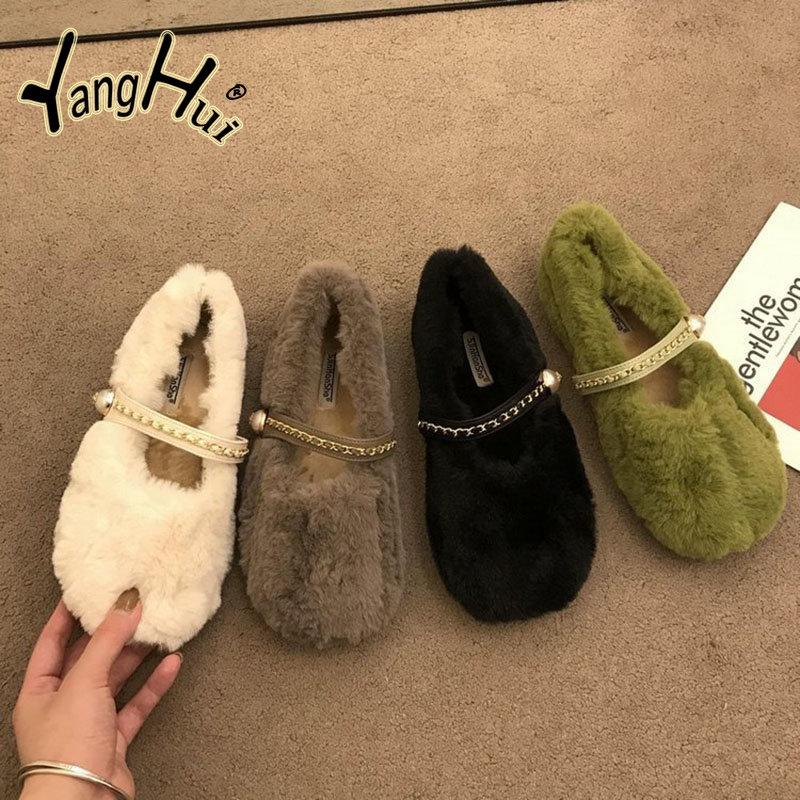 Мягкие плюшевые туфли сохраняют тепло, мягкие, пушистые, женские, лаконичные, повседневные, серые, на плоской подошве, туфли Мэри Джейн 2024 года, новая мода, зима