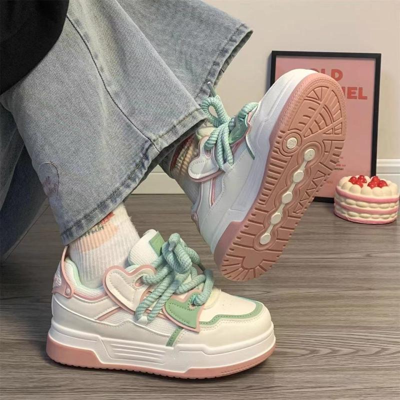 Женские белые туфли на шнуровке с толстой подошвой и цветными блоками, осень 2024 года, новые дышащие универсальные спортивные туфли