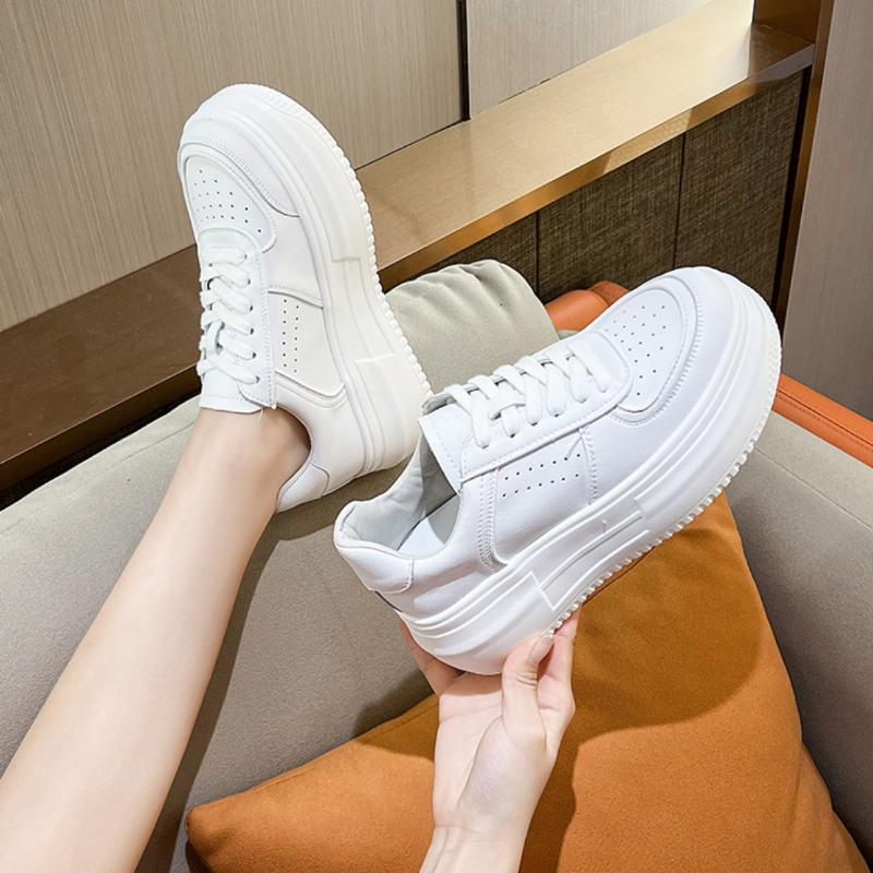 Осенняя обувь для женщин. Маленькие белые туфли с толстой подошвой. Плоская подошва с противоскользящей подошвой. Износостойкая повседневная обувь с толстой подошвой.