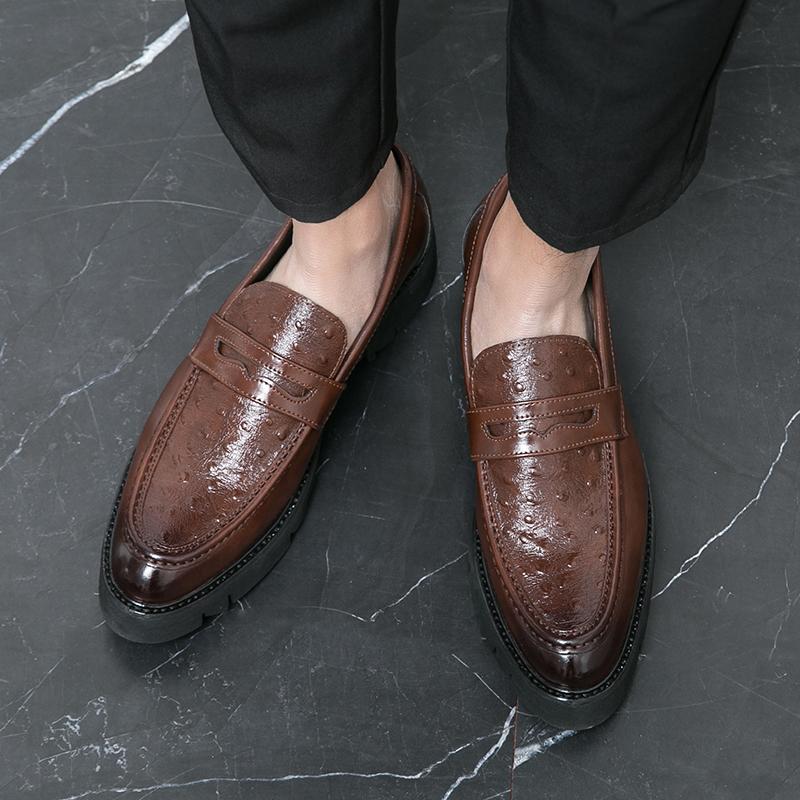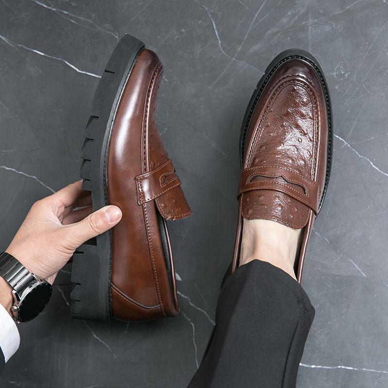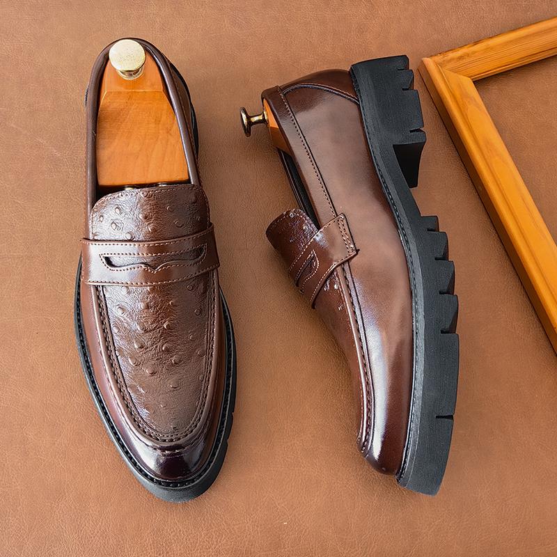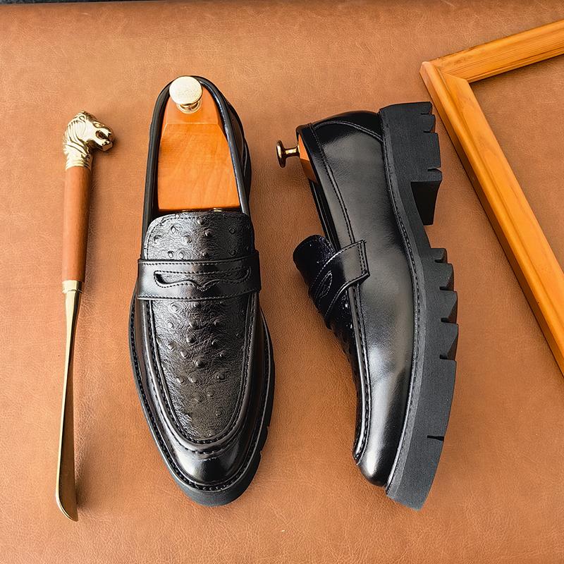 Мужские лоферы на высокой подошве из ПУ, пэчворк, с тисненым узором, с острым носком, на толстой подошве, противоскользящие, классические, формальные, деловые мужские туфли