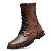 Защитные походные мотоботы зимние длинные кожаные ездовые высокие плюшевые ботинки на шнуровке с мотором мужские уличные ботинки из коровьей кожи Dermis