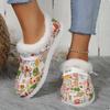 2024 новые женские туфли из парусины в рождественском стиле с принтом, зимние теплые мокасины с флисовой подкладкой, удобные плюшевые рождественские теплые туфли из парусины