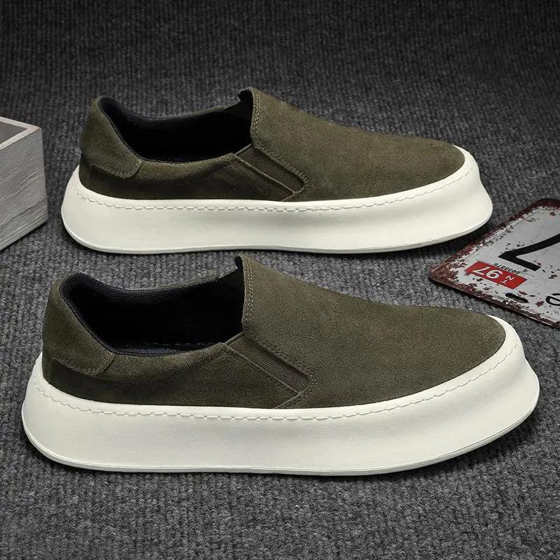 Мужская обувь лето 2024 новые низкие универсальные кроссовки из нубука легкие туфли без застежек модная повседневная обувь