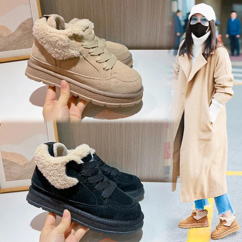 Женские ботинки для отдыха на плоской подошве с толстой подошвой и плоским дном, со шнуровкой, зимние плюшевые замшевые теплые меховые туфли для прогулок зимой — купить товар онлайн с бесплатной доставкой по всему миру!