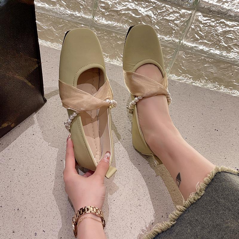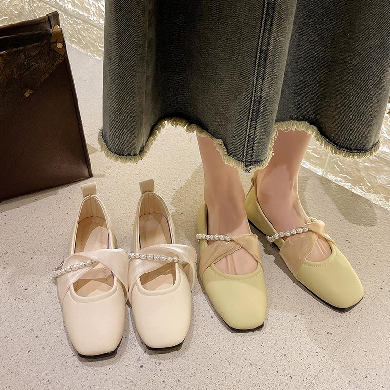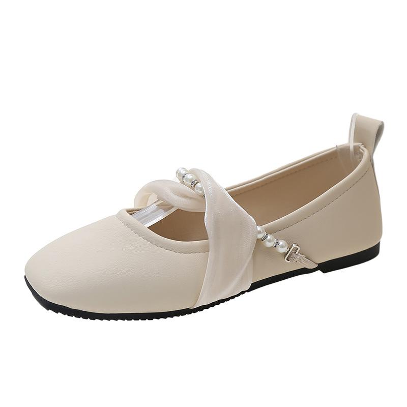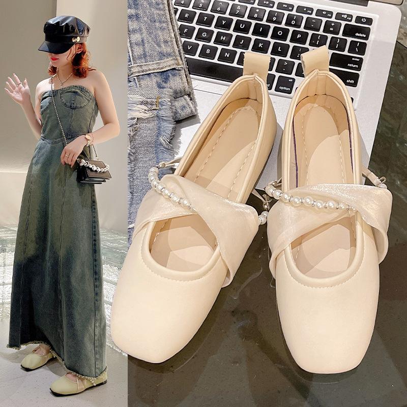 Корейская версия квадратного носка одиночные туфли 2024 Новая мода повседневная простая универсальная плоская подошва удобная женская обувь летнее время