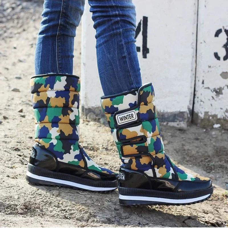 Женские высокие зимние ботинки, теплые хлопковые ботинки из бархата, мужские черные камуфляжные ботинки большого размера 36-47, холодные ботинки