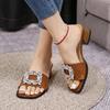2024 Новая обувь для женщин, летние женские тапочки с квадратным носком, сплошной блестящий бриллиант, открытый носок, толстый каблук, новинка, туфли-туфли