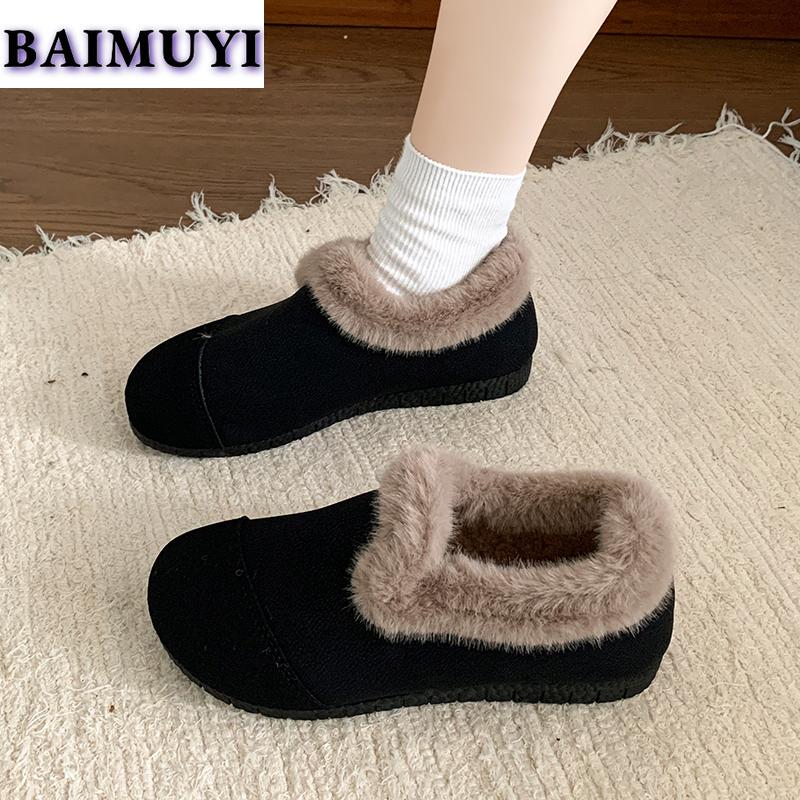 Меховые балетки женские ботильоны теплая обувь 2025 тренд зимние повседневные кроссовки для ходьбы ботинки челси короткие плюшевые хлопковые ботинки женские