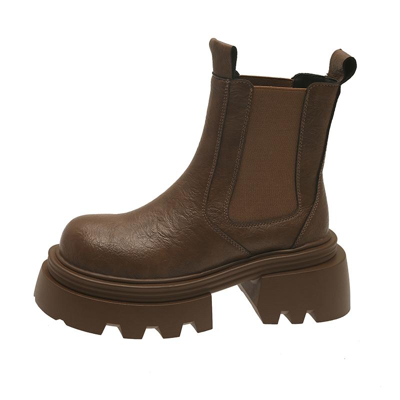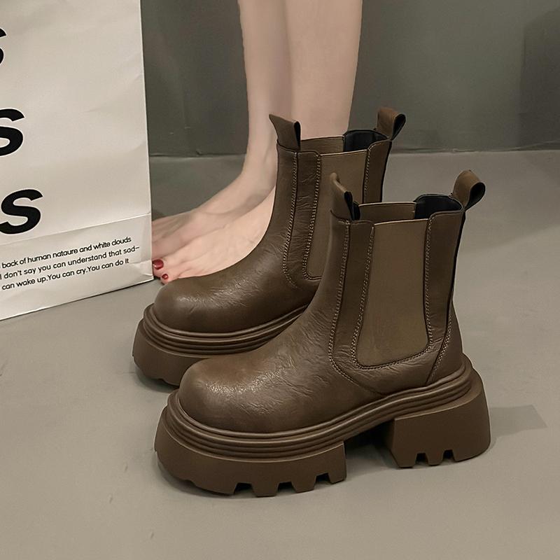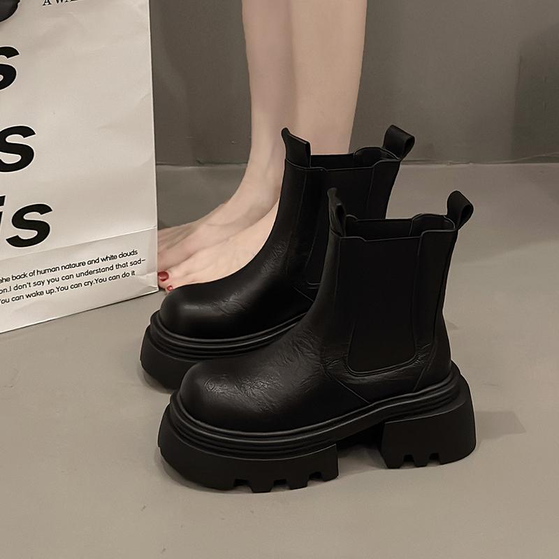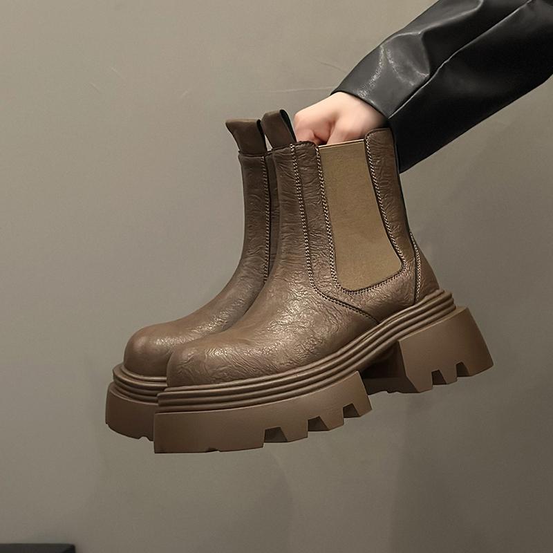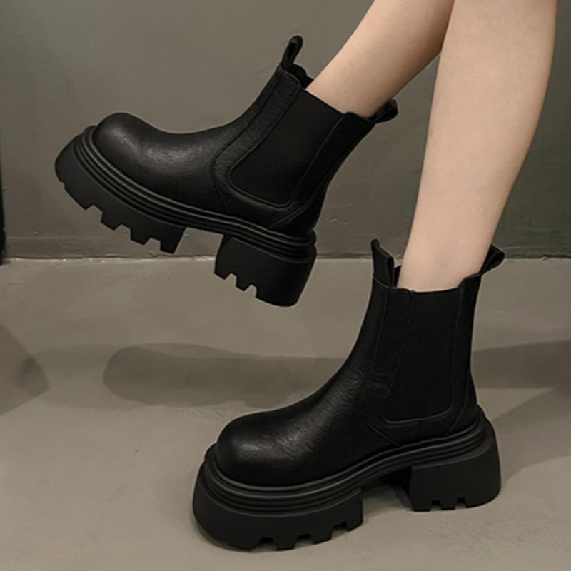 Женские ботильоны челси на платформе, модные зимние ботинки, женские брендовые кожаные туфли, зима 2024, трендовые каблуки, массивные готические ботинки Mujer