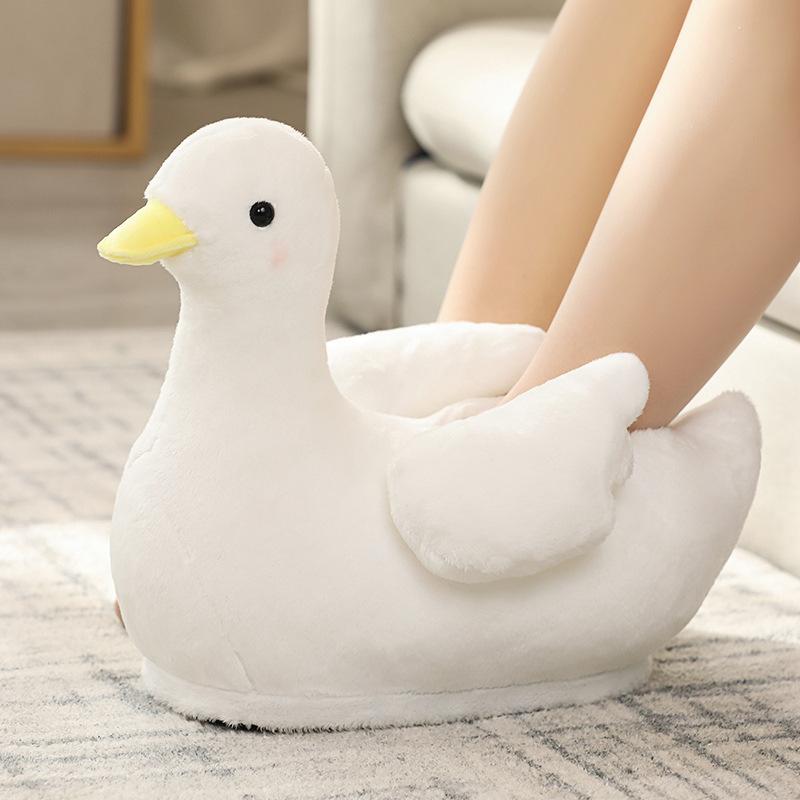 2024 Горячая зимняя теплая пара резиновых уточек хлопковые туфли плюс размер мультфильм милый большой белый гусь сумка с домашними тапочками хлопковые туфли