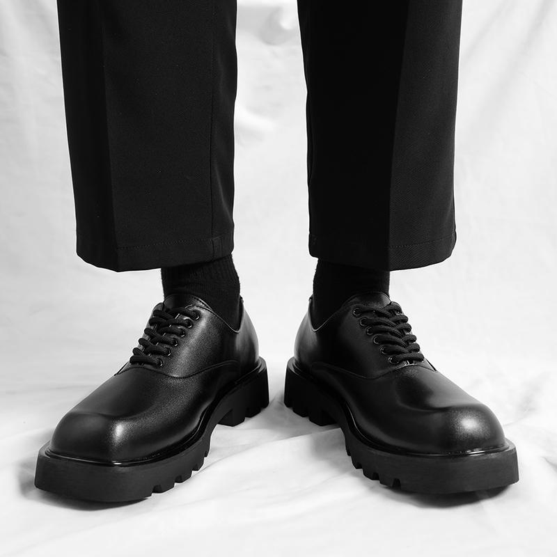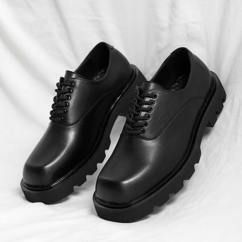 Мужские корейские кожаные туфли-оксфорды на платформе, мужские дерби, повседневные туфли-лоферы с квадратным носком, деловые туфли 38-48
