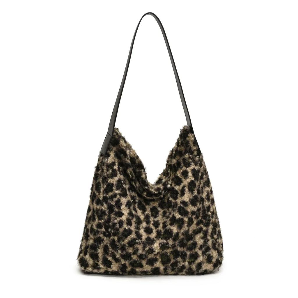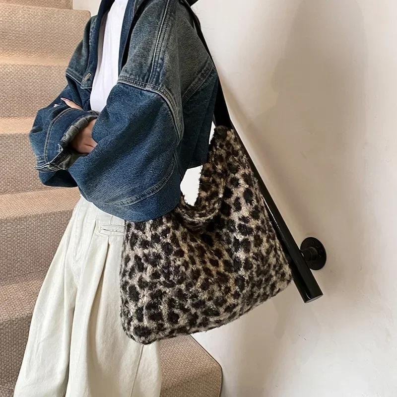 Плюшевая сумка с леопардовым принтом для женщин, большая вместимость, осень-зима, новинка, пушистая университетская студенческая сумка для поездок на работу