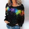 Мода граффити бабочка принт цветной всплеск сосна кипарис длинный рукав футболка осенняя мода женская футболка