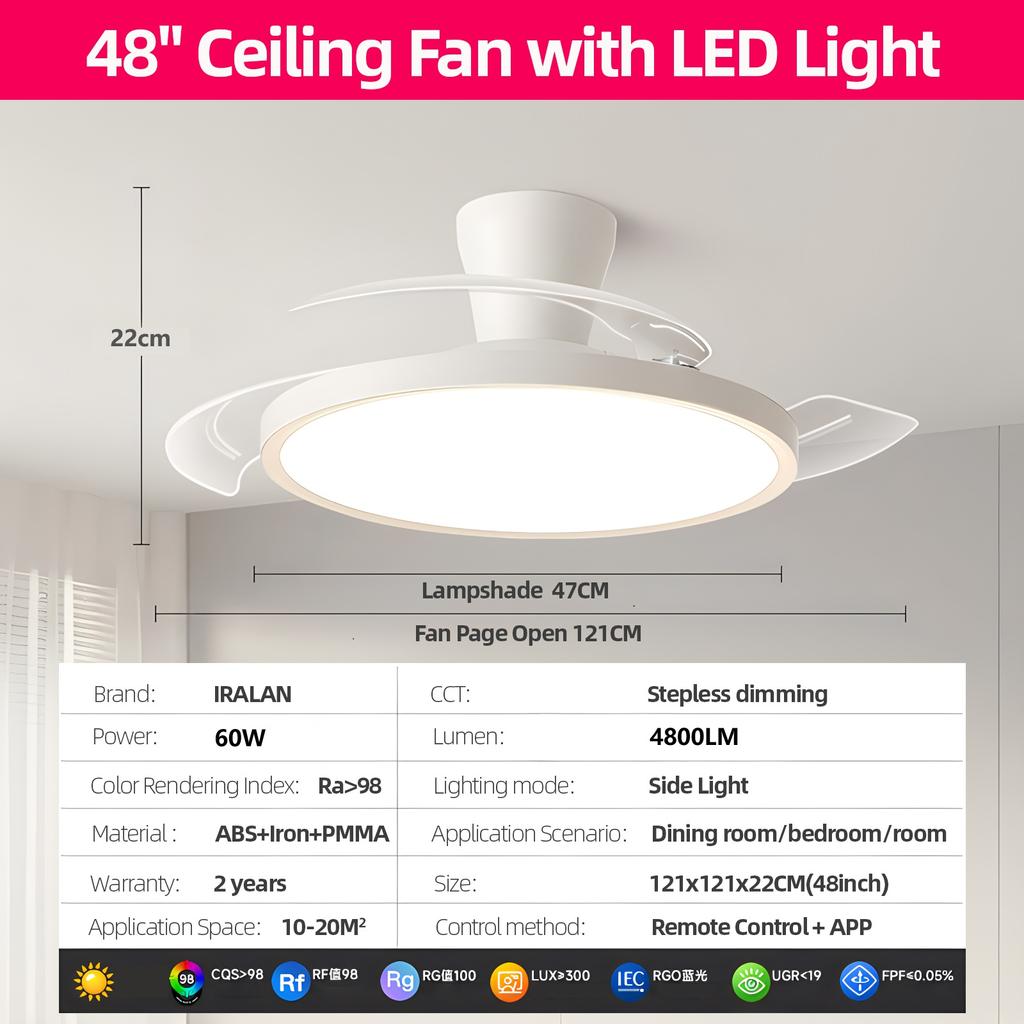 Светодиодный потолочный вентилятор Современный домашний вентилятор с выдвижными лопастями, люстра, вентилятор с регулируемой яркостью, потолочный светильник для гостиной, спальни, электрический вентилятор