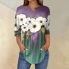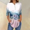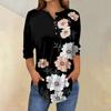 Женская свободная футболка с воротником на пуговицах и винтажным цветочным принтом, рукав три четверти