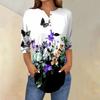 Женская свободная футболка с воротником на пуговицах и винтажным цветочным принтом, рукав три четверти