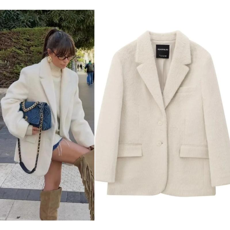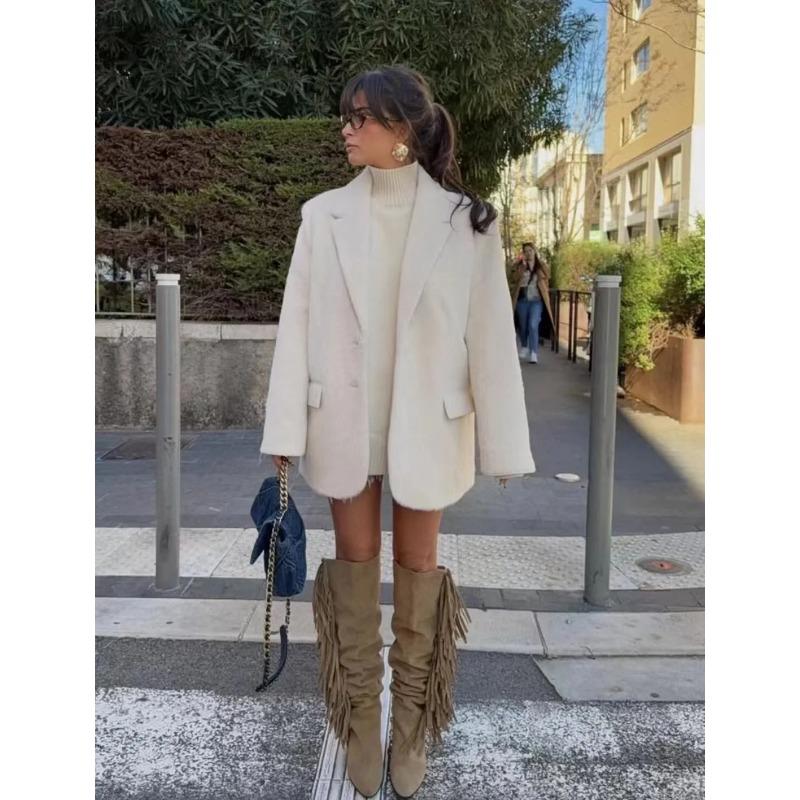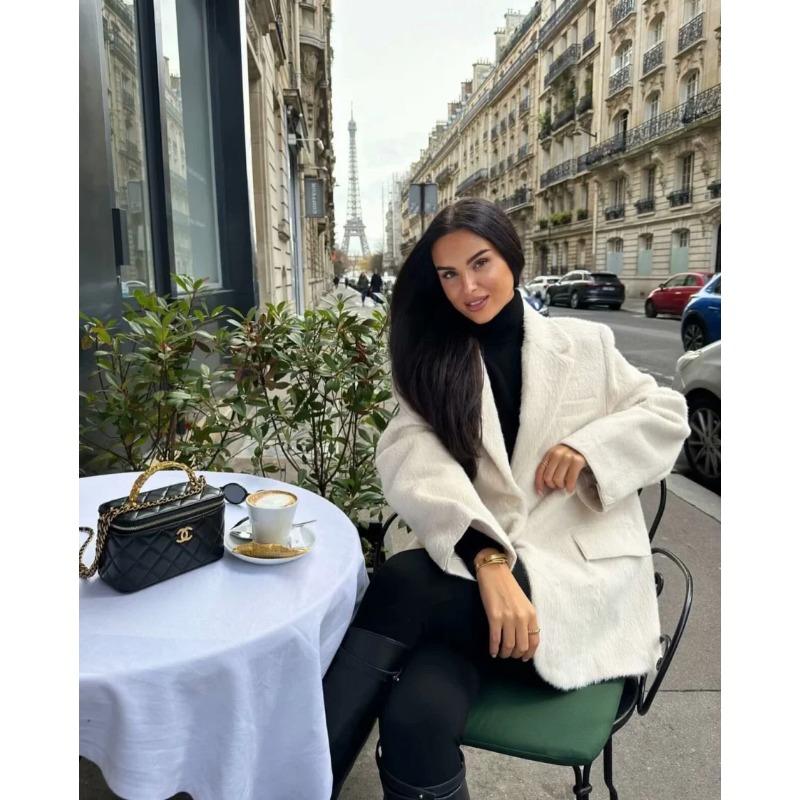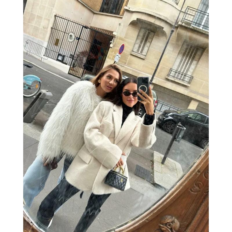 Зимняя женская мода, белый искусственный мех, эффект, прямой покрой, свободная версия, повседневная куртка
