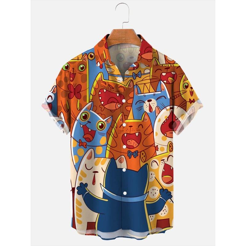 Рубашка мужская Hawaii, рубашка с рисунком из аниме, топы с короткими рукавами, летняя повседневная мужская одежда, уличная одежда, животные, кошки, ретро-футболки с 3D-принтом