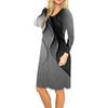 Женское платье с длинным рукавом, плиссированное, свободное, повседневное платье с карманами, платья длиной до колена