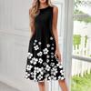 Женское повседневное и модное платье средней длины с круглым вырезом без рукавов и принтом