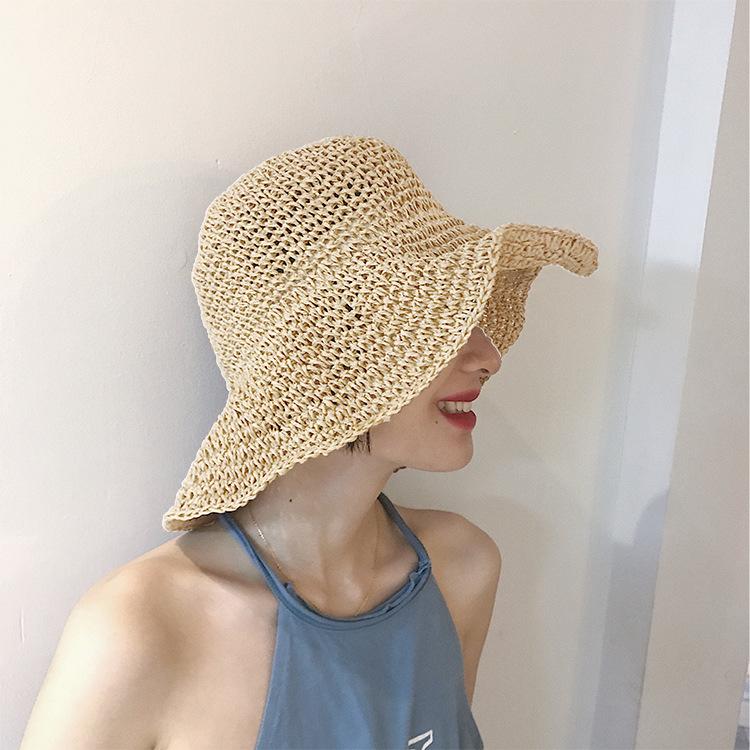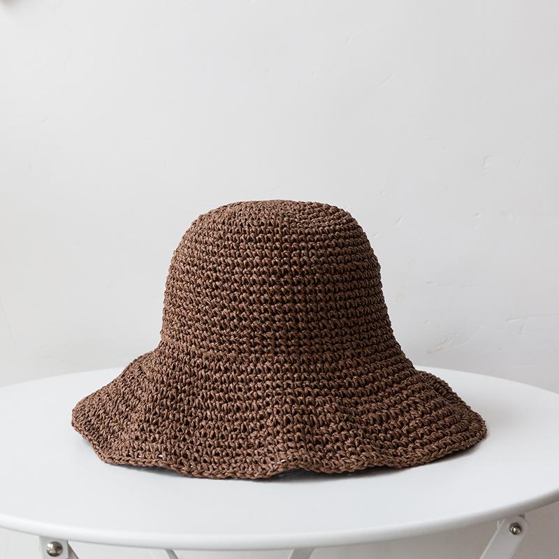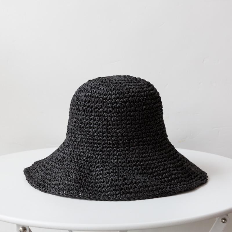 Дышащая классическая однотонная соломенная шляпа-ведро в стиле бохо, вязаная крючком, винтажная шляпа для путешествий на открытом воздухе, пляжа, для женщин, для повседневного использования