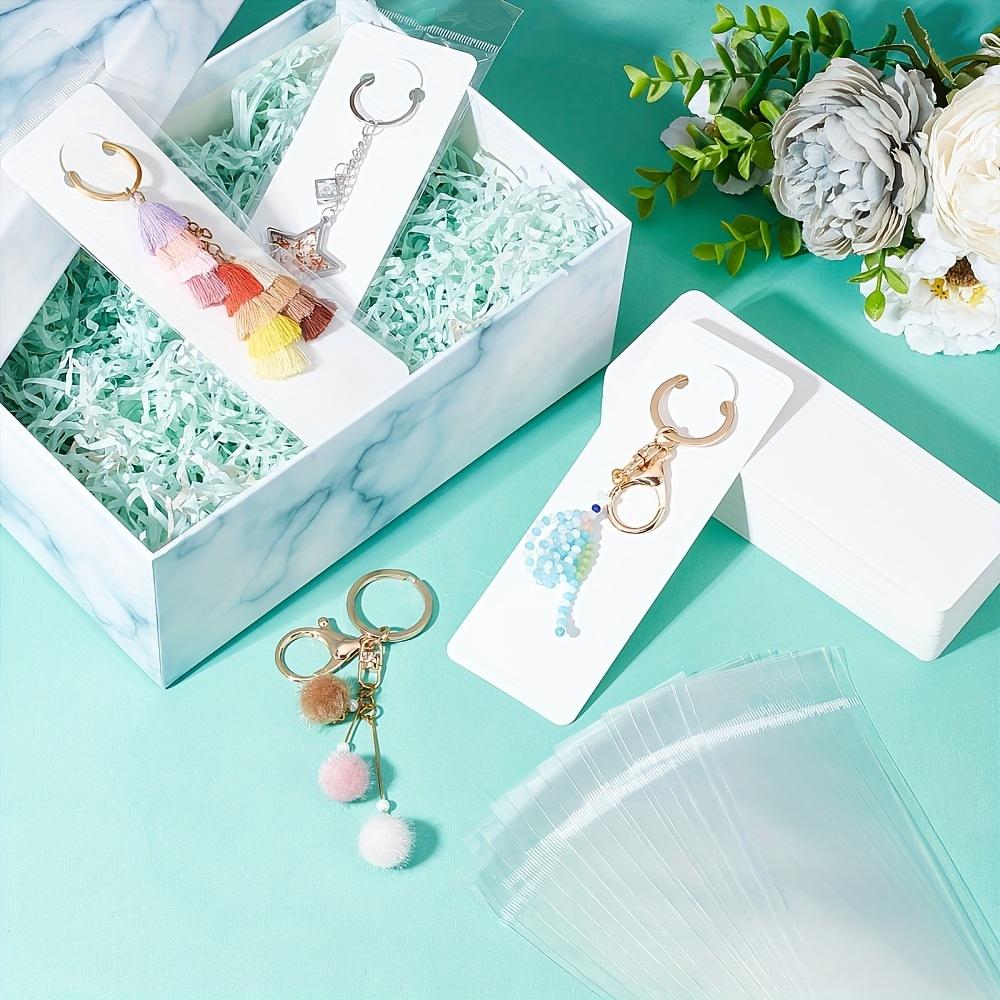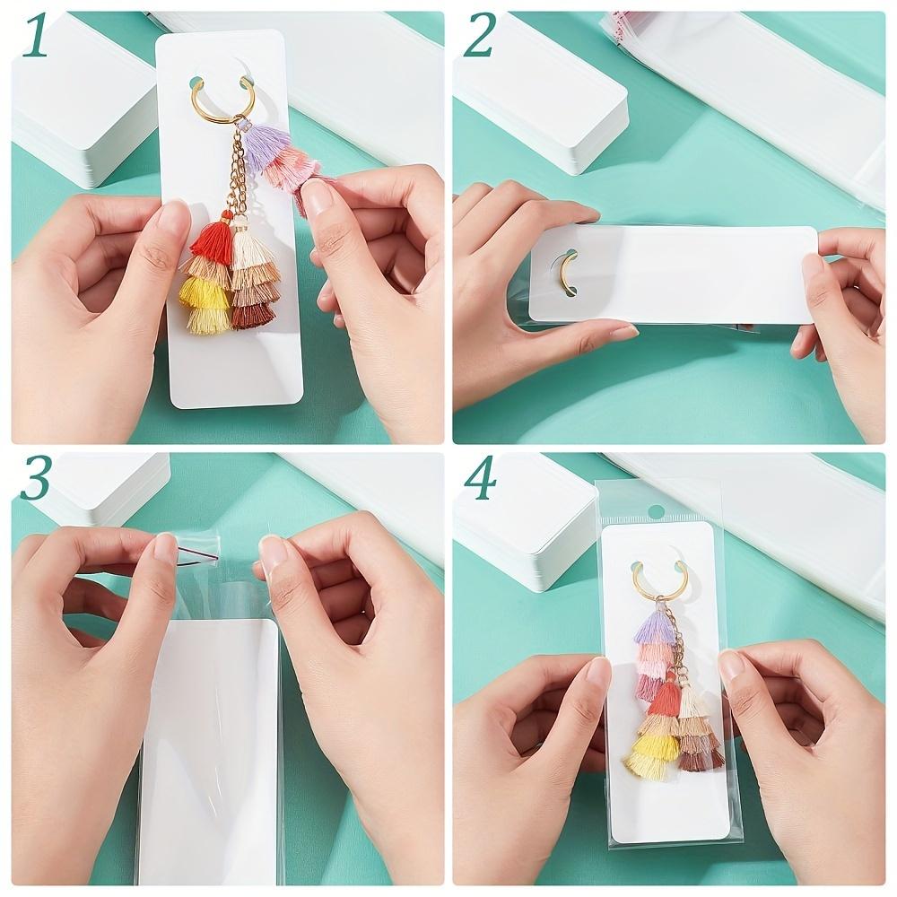 100 шт. Белый брелок для ключей, демонстрационный пакет, бумажный держатель карт с 100 шт. Прозрачные самозапечатывающиеся пакеты для продажи, браслет, брелок для малого бизнеса