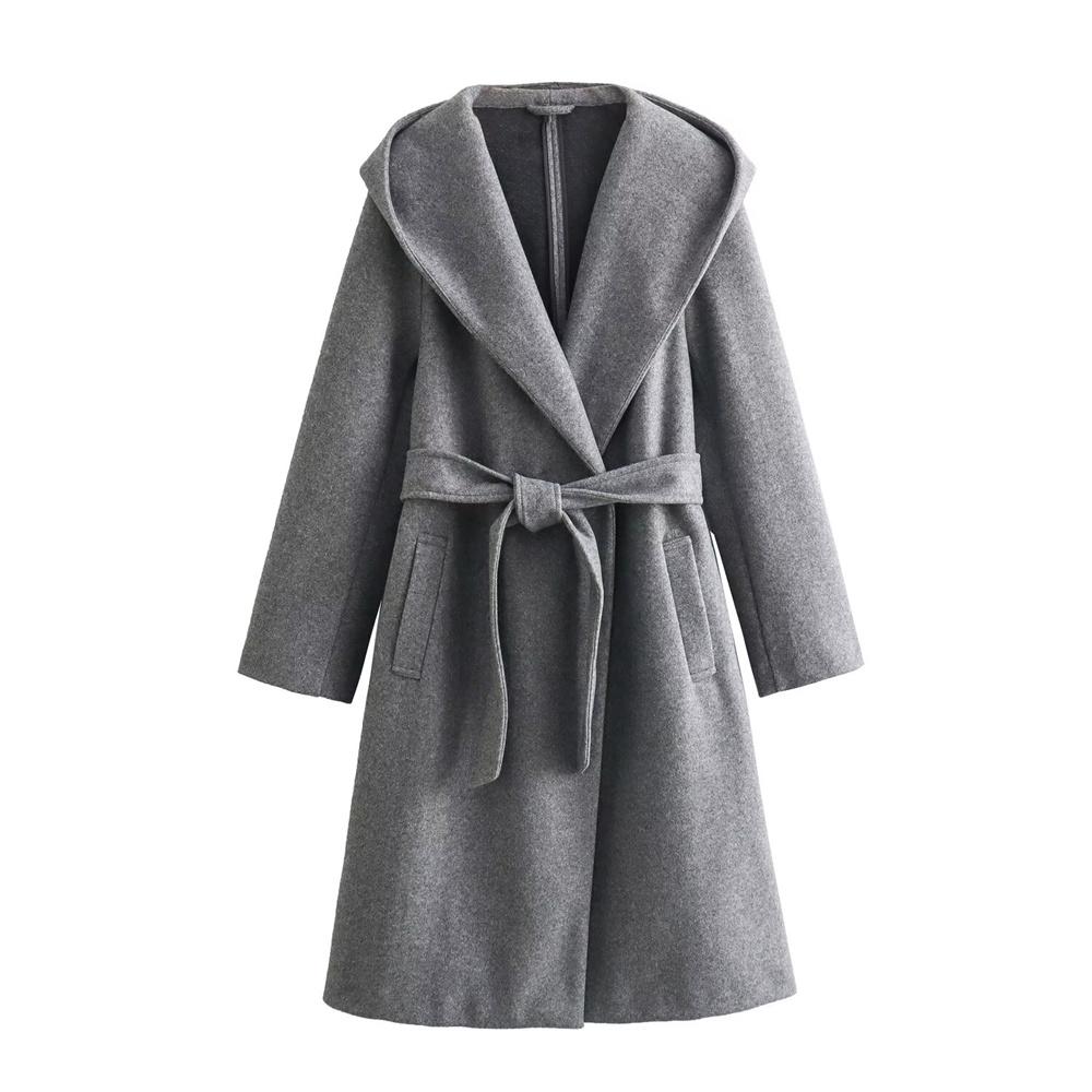 Осенняя новая женская модная уличная ретро-шуба с капюшоном и поясом, кардиган, длинная куртка
