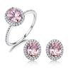 Овальный розовый нано морганит из настоящего стерлингового серебра 925 пробы для женщин серьги кольца ювелирные изделия комплект