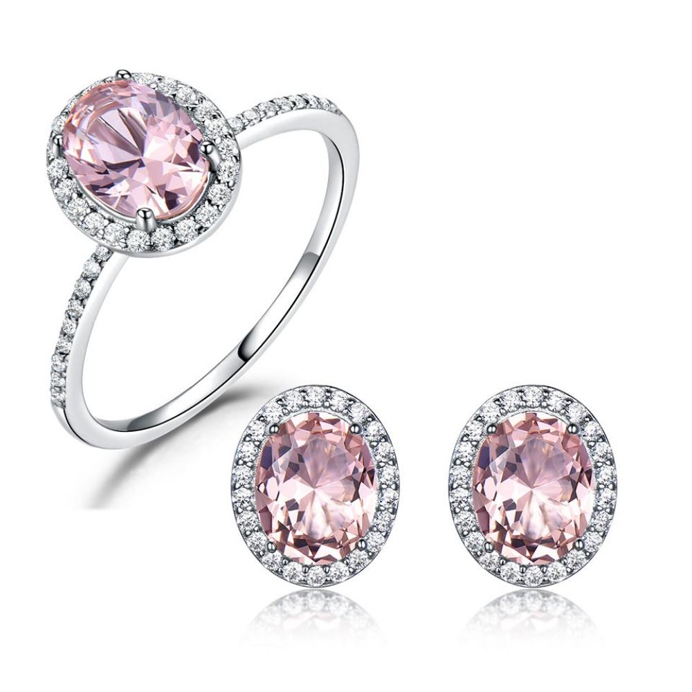 Овальный розовый нано морганит из настоящего стерлингового серебра 925 пробы для женщин серьги кольца ювелирные изделия комплект — купить товар онлайн с бесплатной доставкой по всему миру!