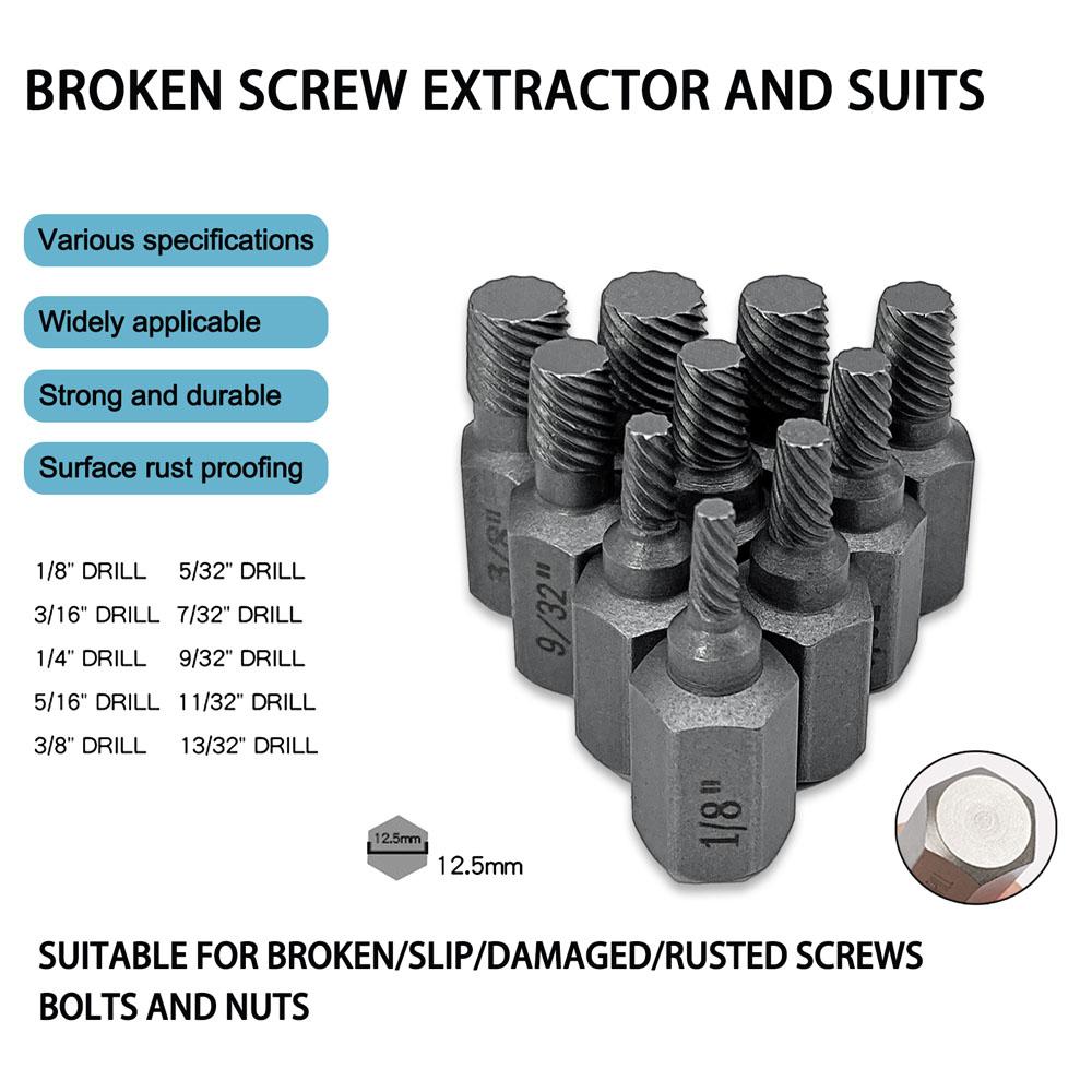 10 шт. сверл для извлечения винтов, набор для извлечения сломанных поврежденных болтов, набор инструментов для извлечения электродрели 1/8-13/32''
