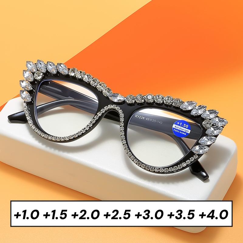 Индивидуальные модные очки для чтения «кошачий глаз» с цветными большими бриллиантами, очки для пресбиопии, блокирующие синий свет, защитные очки для глаз