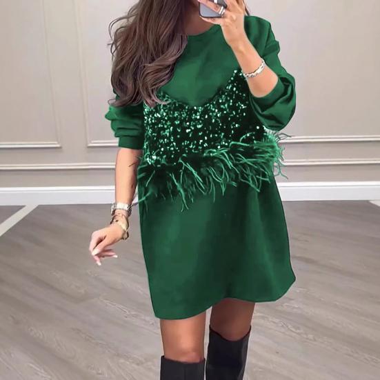 Отделка пайетками и перьями: Украсьте свой образ сочетанием панелей из пайеток и акцентов из перьев на этом платье.. Изысканная детализация добавляет нотку роскоши, создавая эффектное изделие, которое легко выделяется.