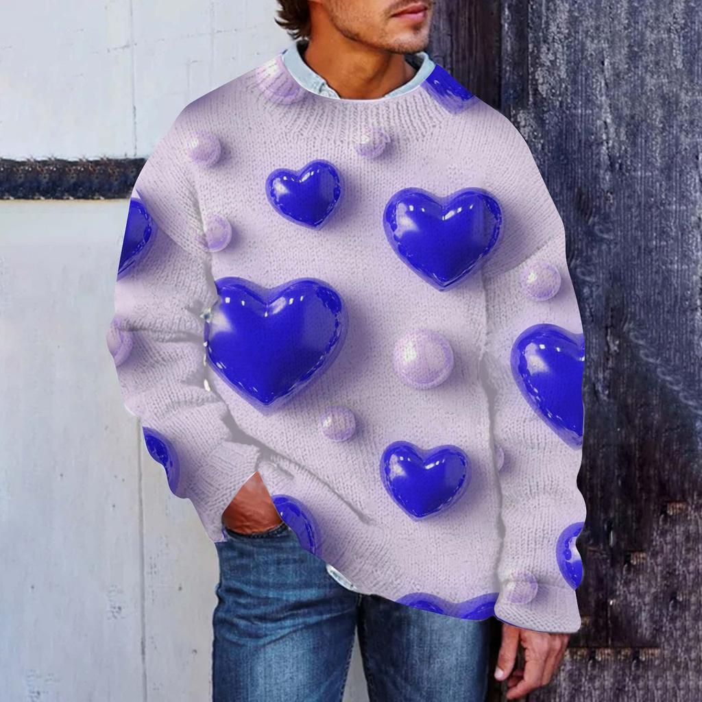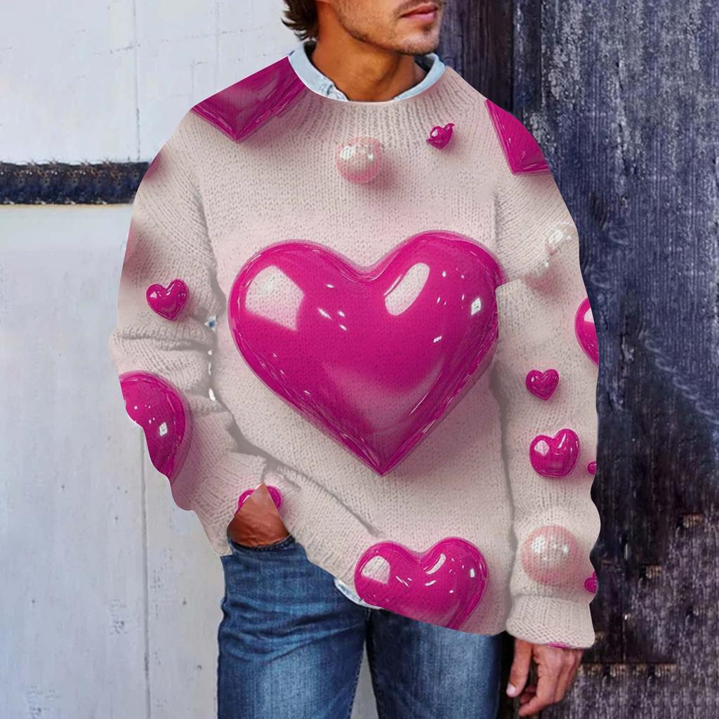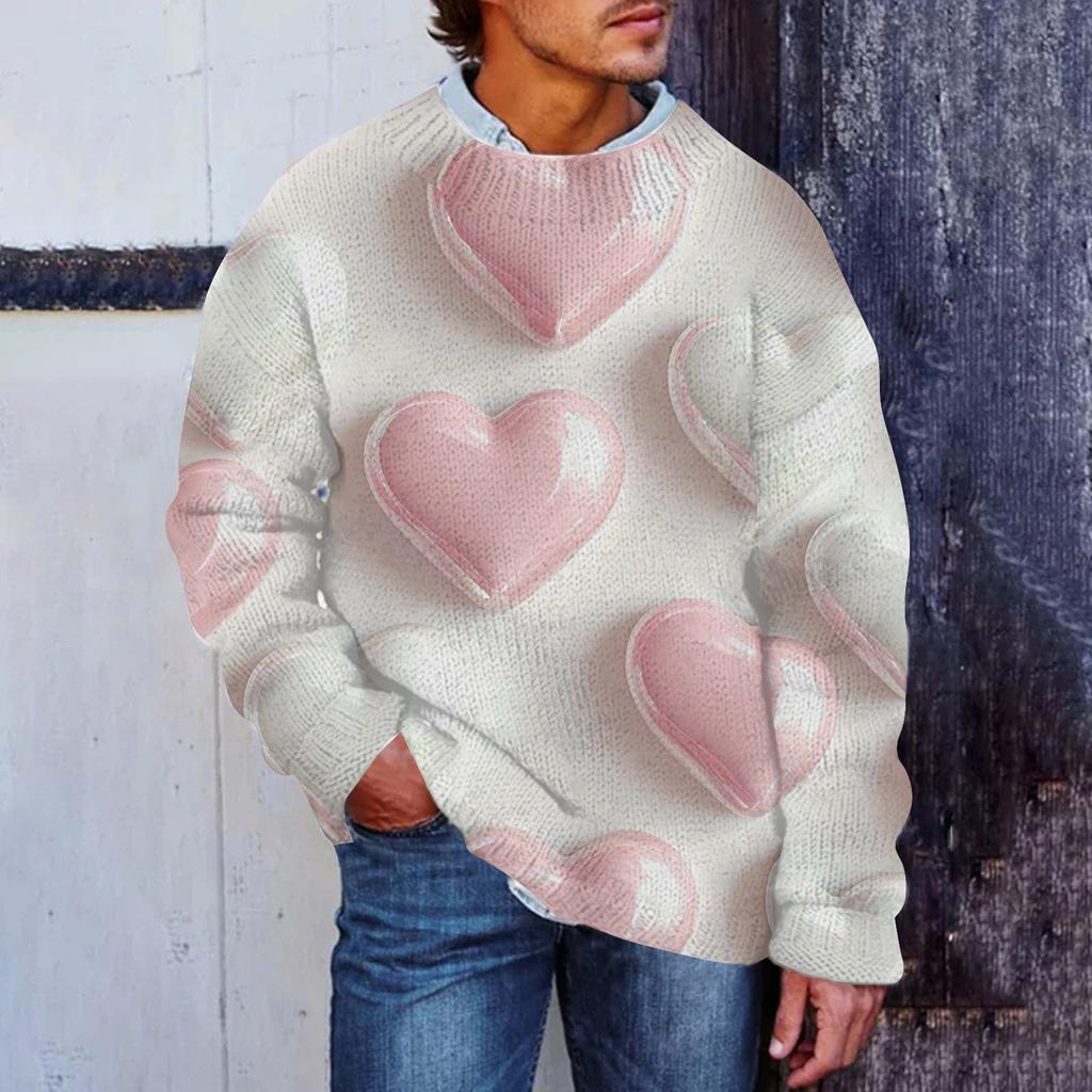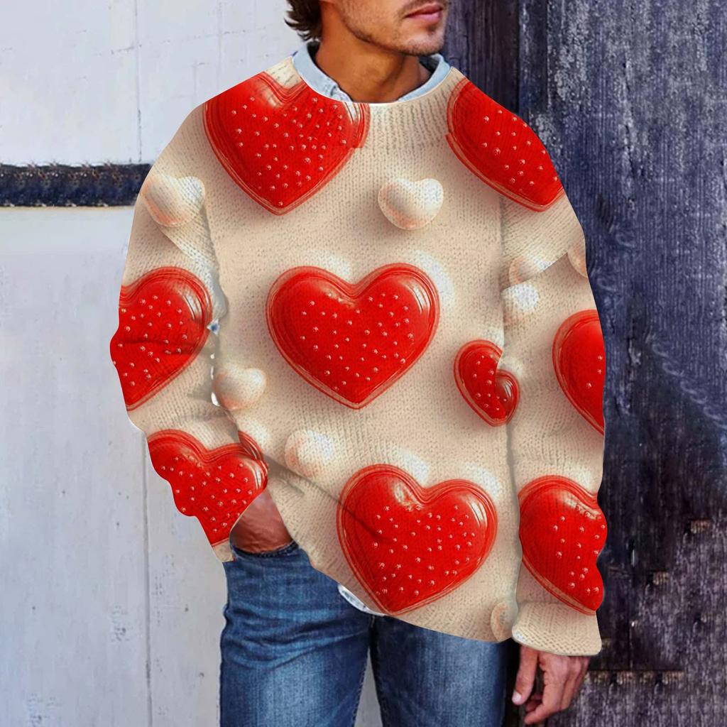 Мужской свитер с принтом ко Дню святого Валентина, толстовка с круглым вырезом, свободный топ с длинными рукавами