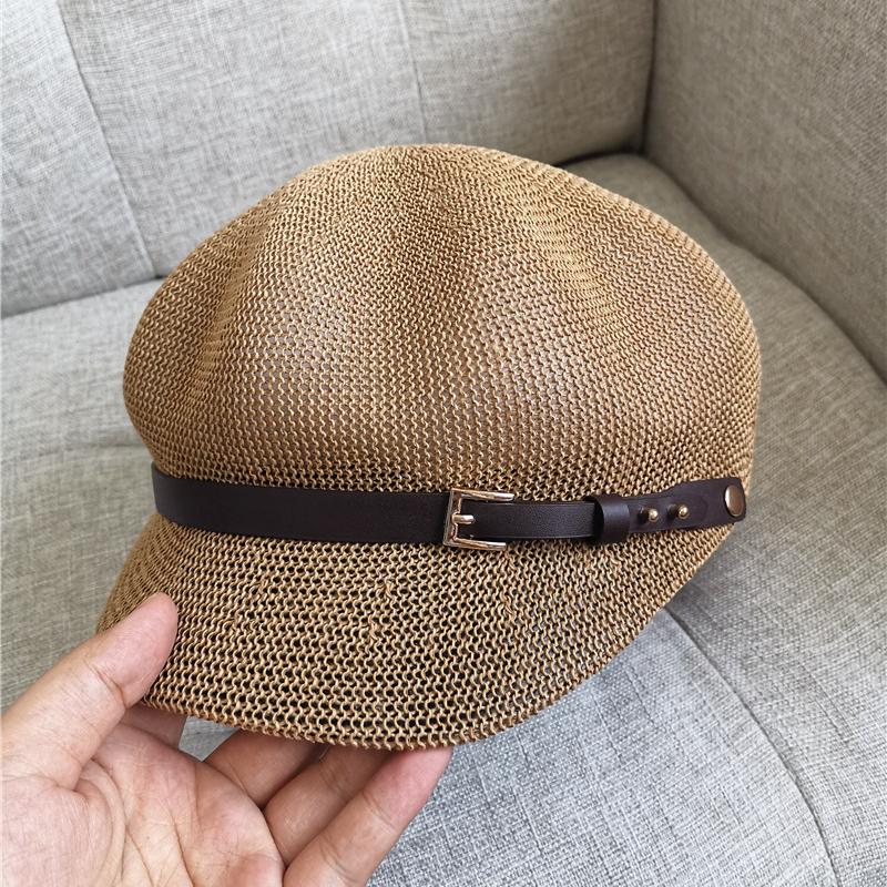 Стильный женский восьмиугольный берет - дышащая сетка, регулируемый, солнцезащитный, соломенная шляпа для пляжа, художника, художника - идеально подходит для лета