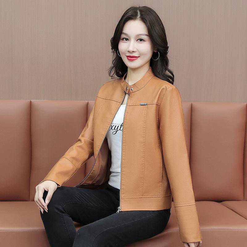 Куртка из искусственной кожи, женская осенняя одежда, повседневный ретро-воротник-стойка, кожаная куртка, короткий топ
