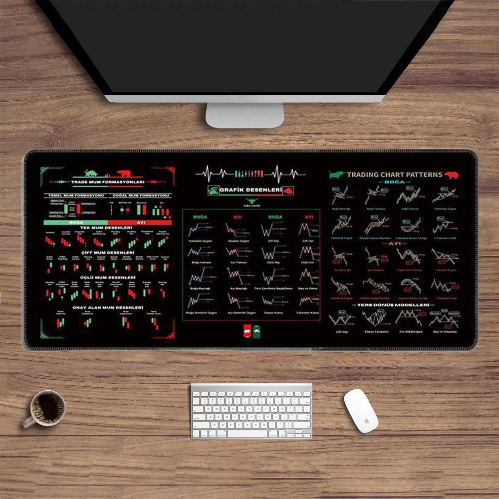 Шаблон диаграммы фондового рынка Коврик для стола трейдера Эффективный узор свечи Художественный коврик для мыши Коврики для ноутбука