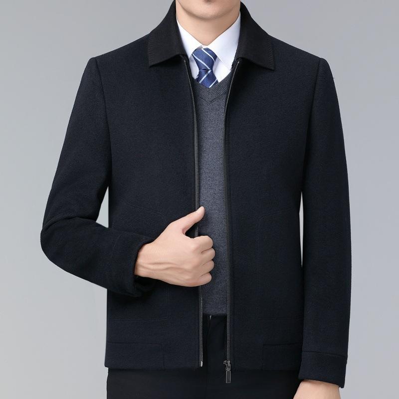 Двойной воротник, чистая шерсть, мужская куртка, осень-зима, кашемировое короткое пальто для людей среднего возраста, высококачественное шерстяное пальто для папы