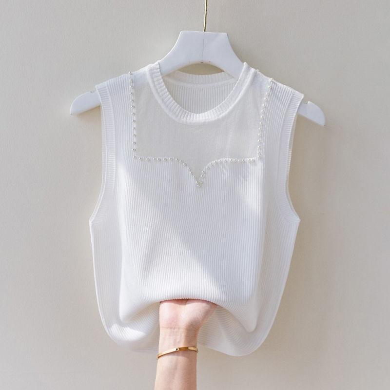 Жилет на бретелях, женский круглый вырез, сетка, темперамент, бусина-гвоздь, вязаный свитер без рукавов, летний топ