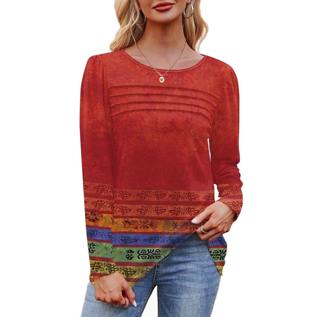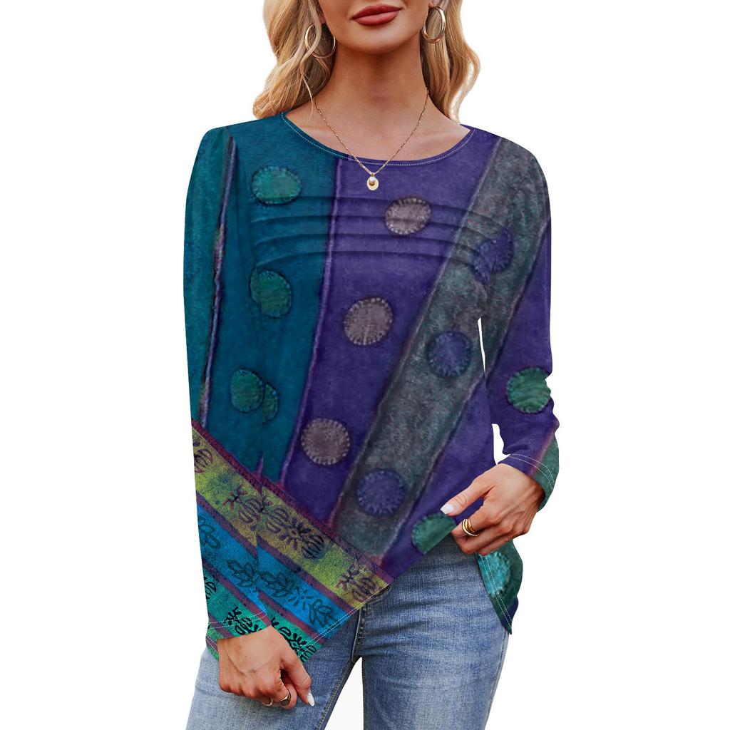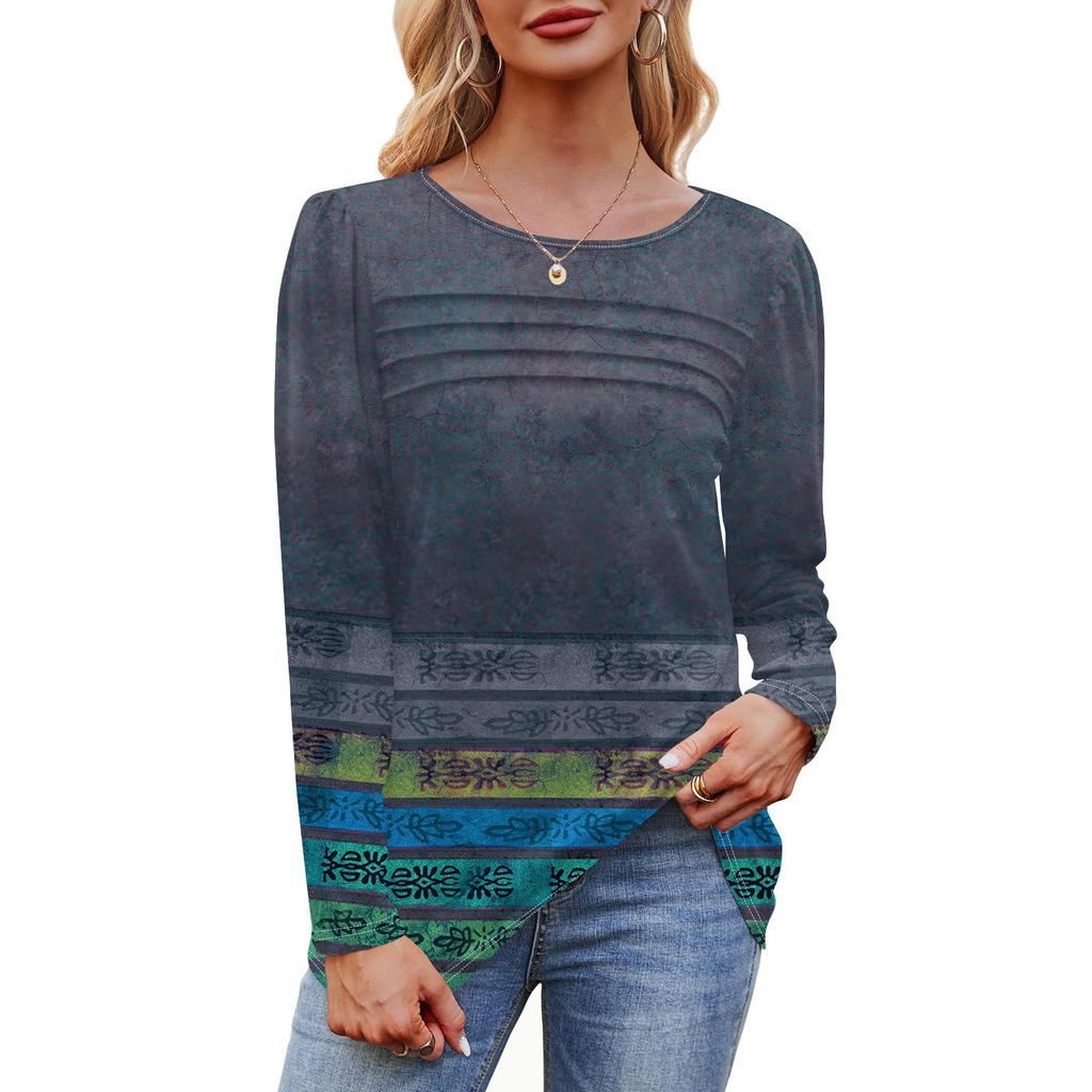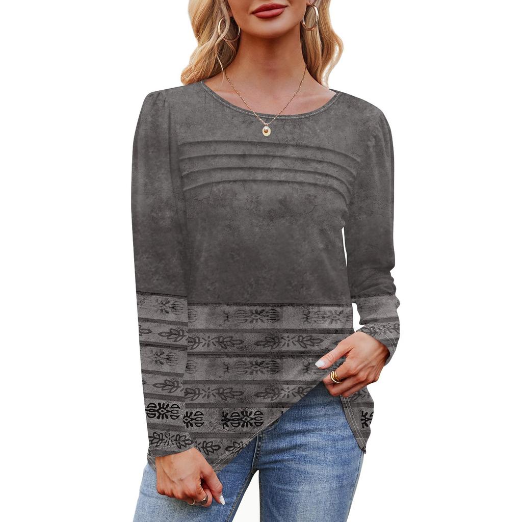 Женский свободный повседневный топ с круглым вырезом и длинными рукавами, модный топ
