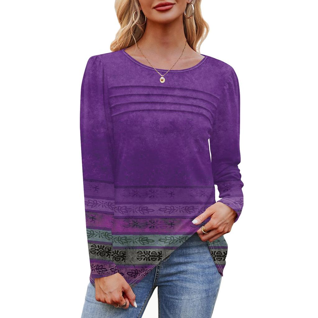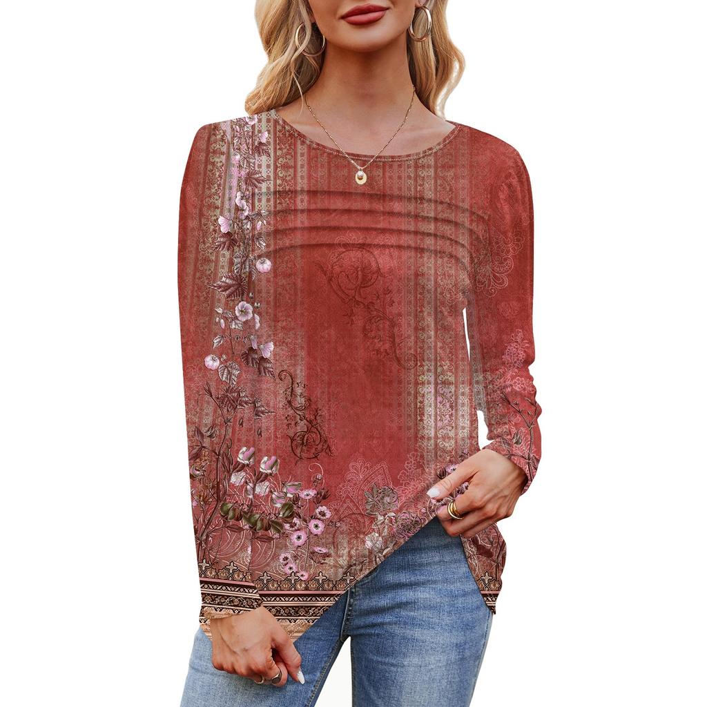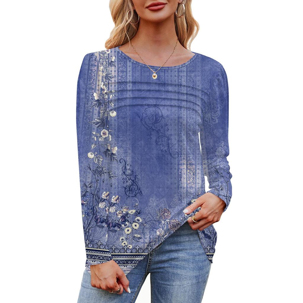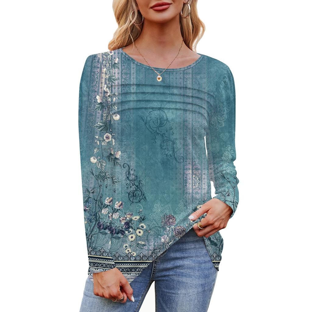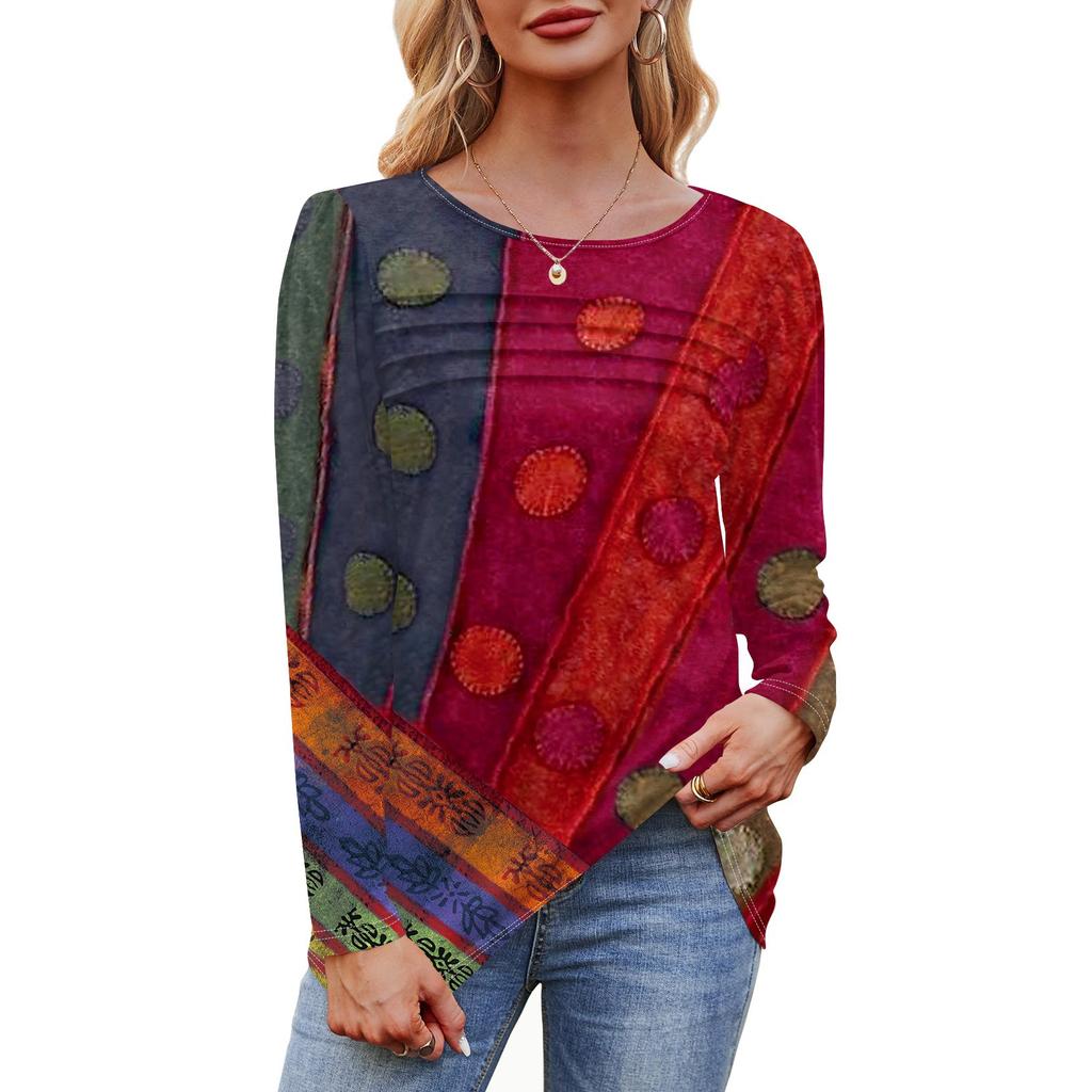 Женский свободный повседневный топ с круглым вырезом и длинными рукавами, модный топ