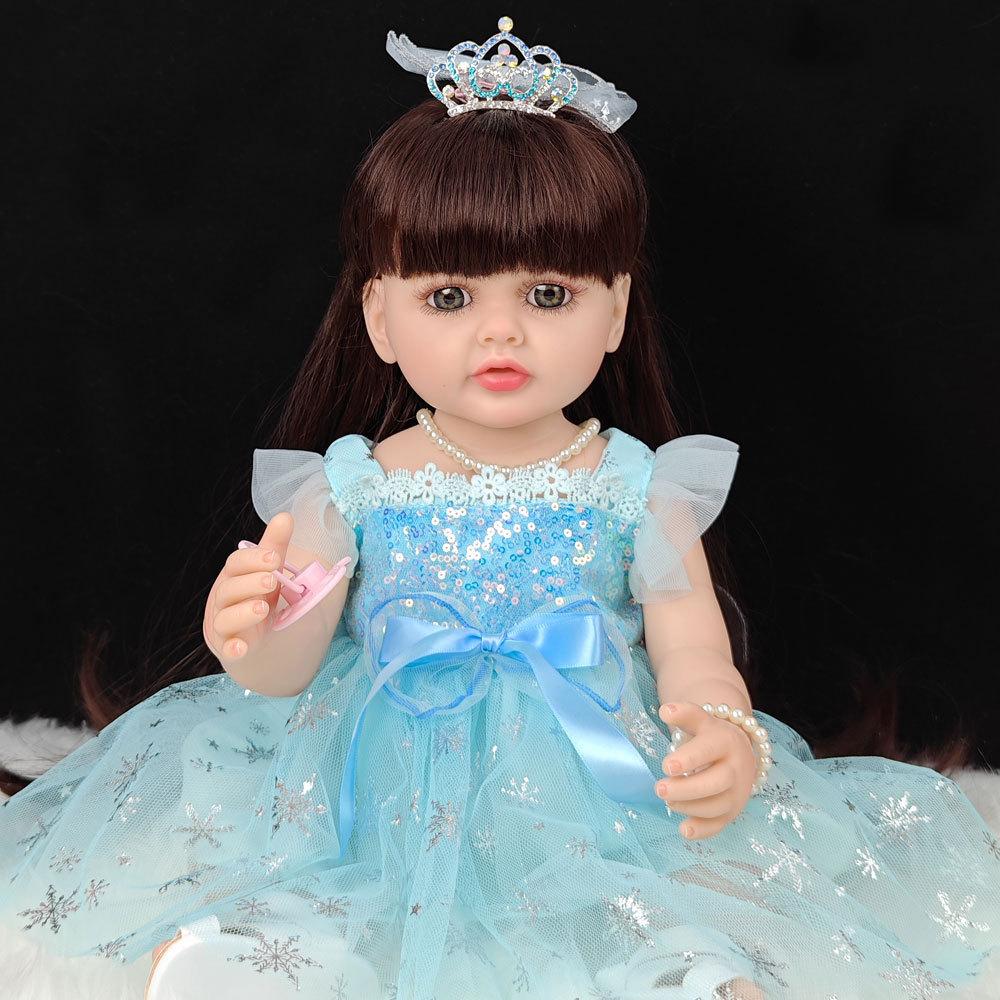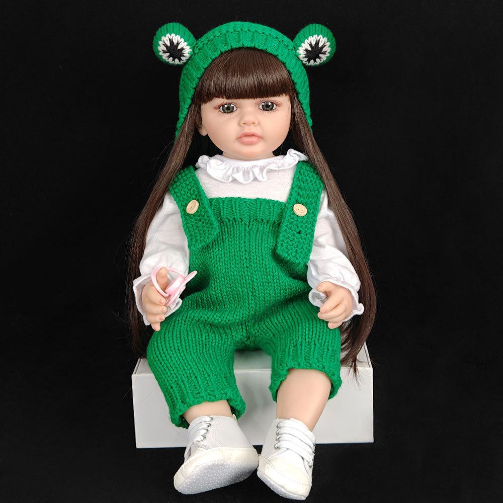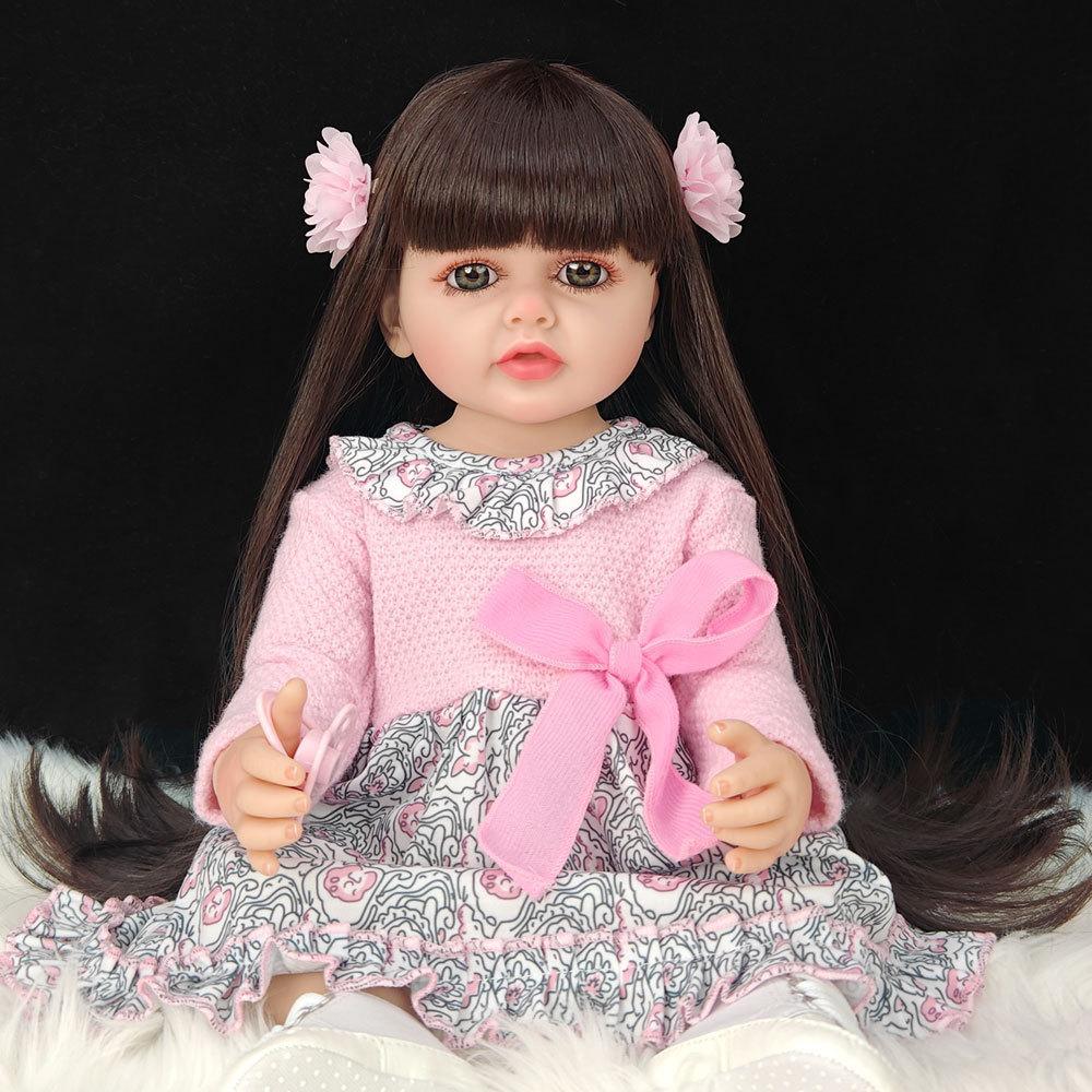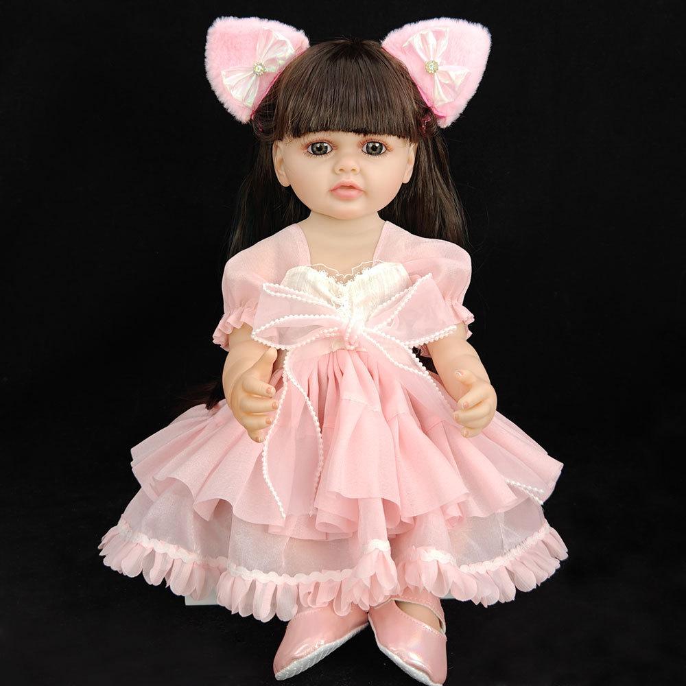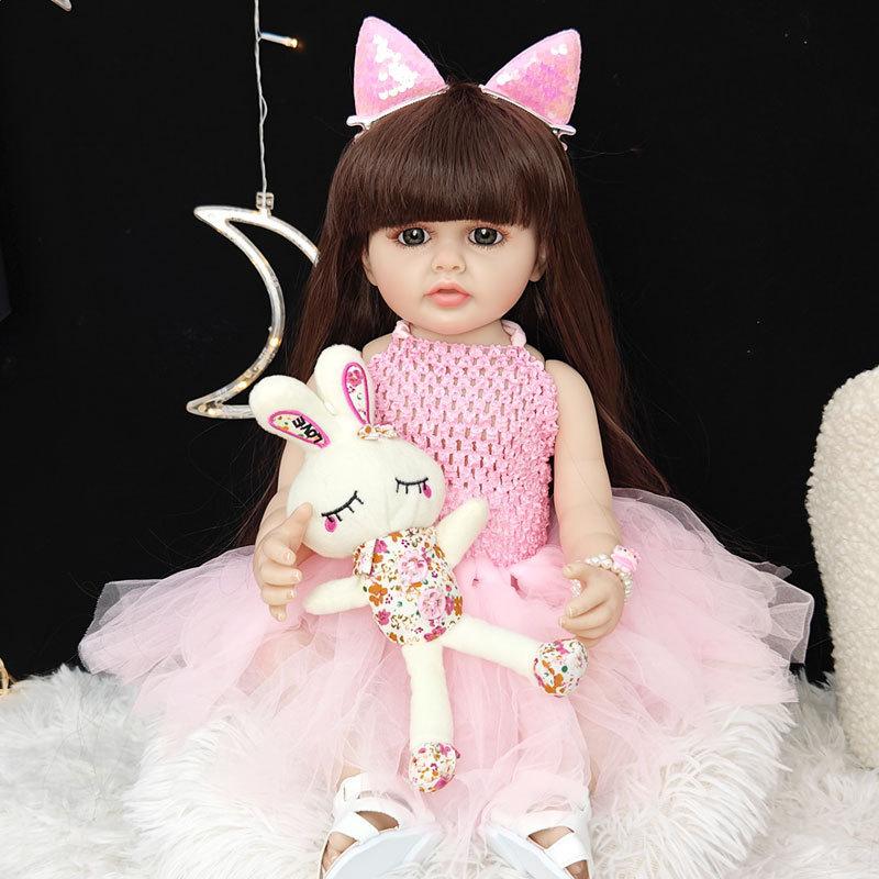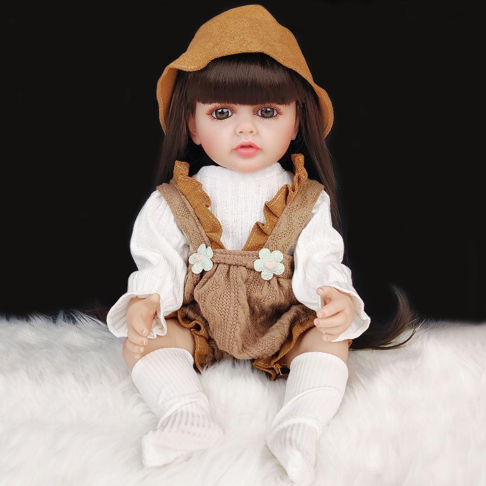 55 см 22 дюйма Реалистичная кукла-младенец Reborn Girl Мягкая силиконовая кукла с длинными каштановыми волосами Реалистичная принцесса Малышка Bebe Подарок на день рождения