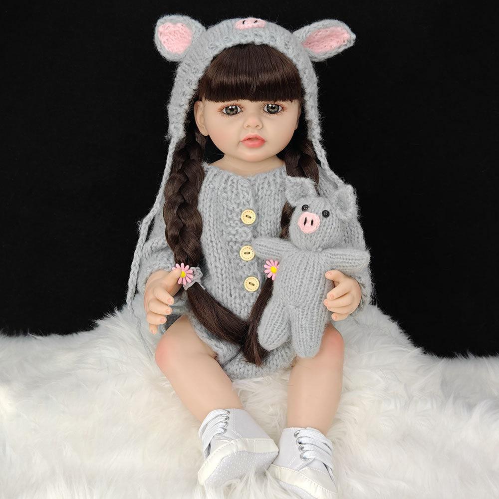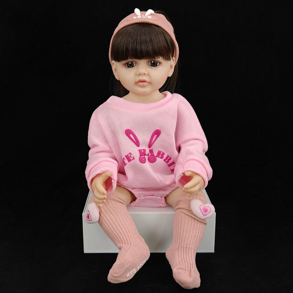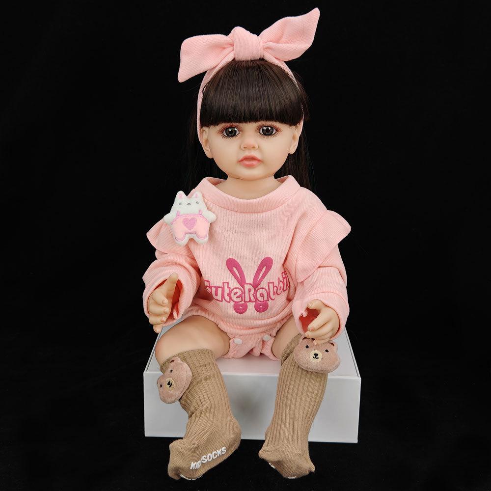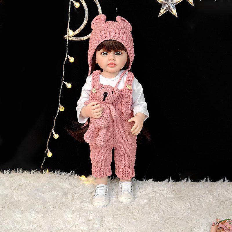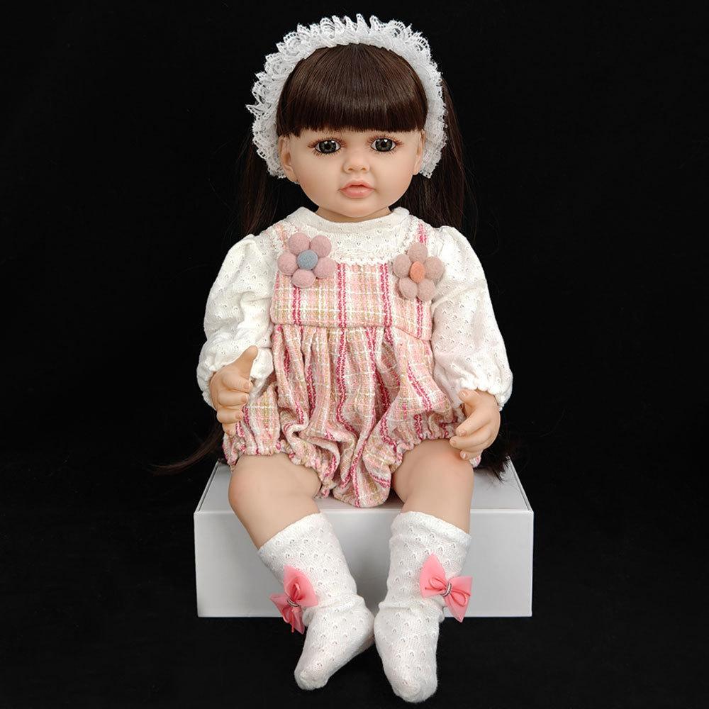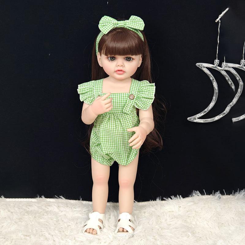 55 см 22 дюйма Реалистичная кукла-младенец Reborn Girl Мягкая силиконовая кукла с длинными каштановыми волосами Реалистичная принцесса Малышка Bebe Подарок на день рождения