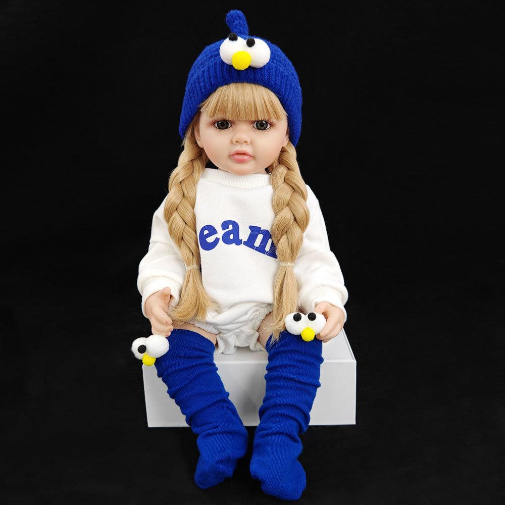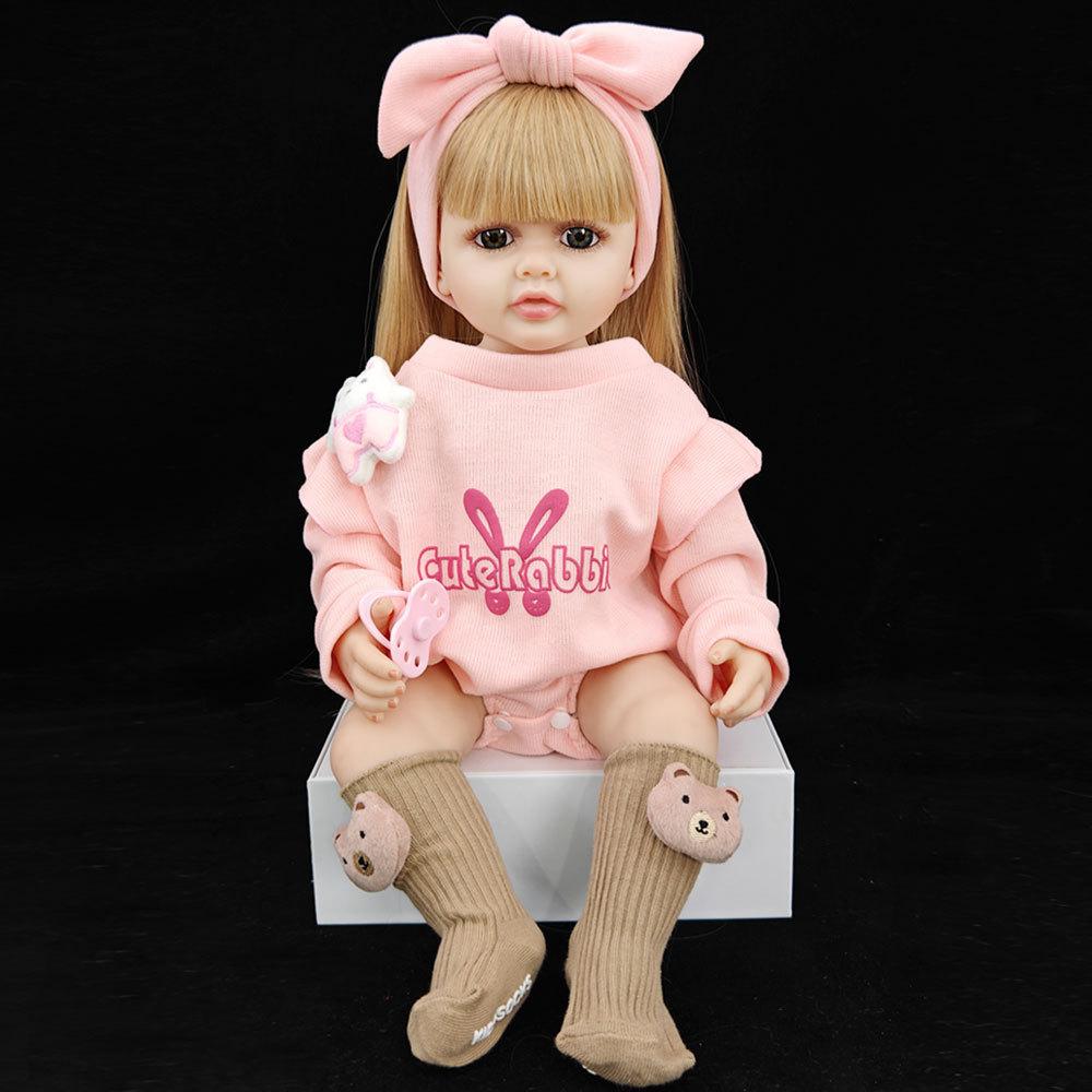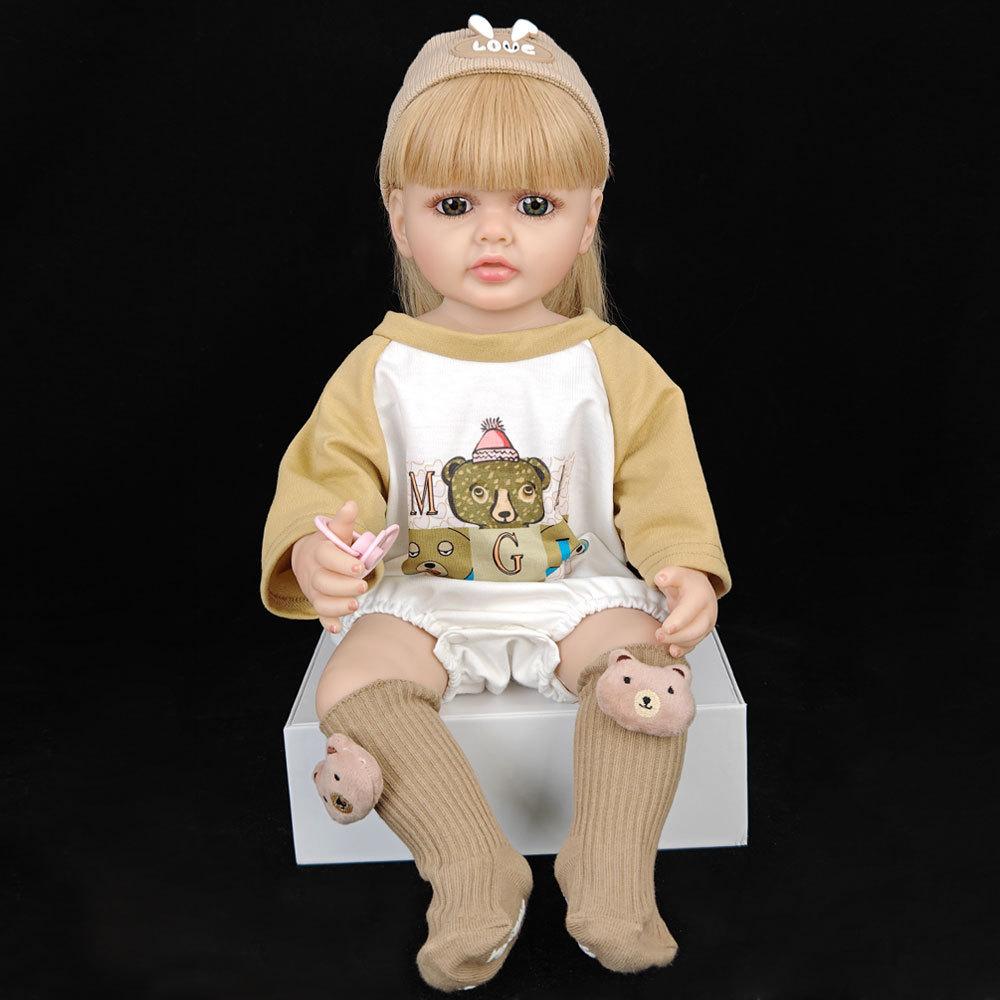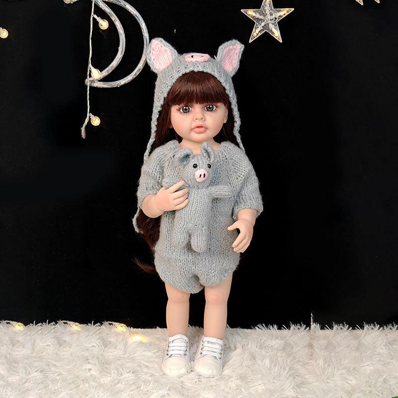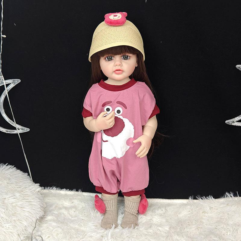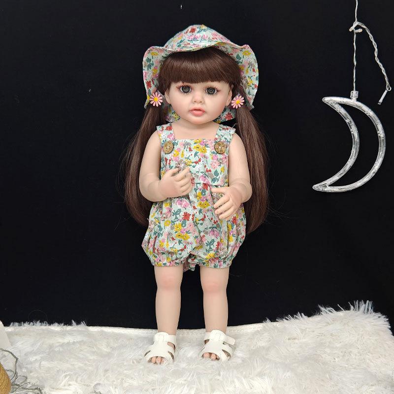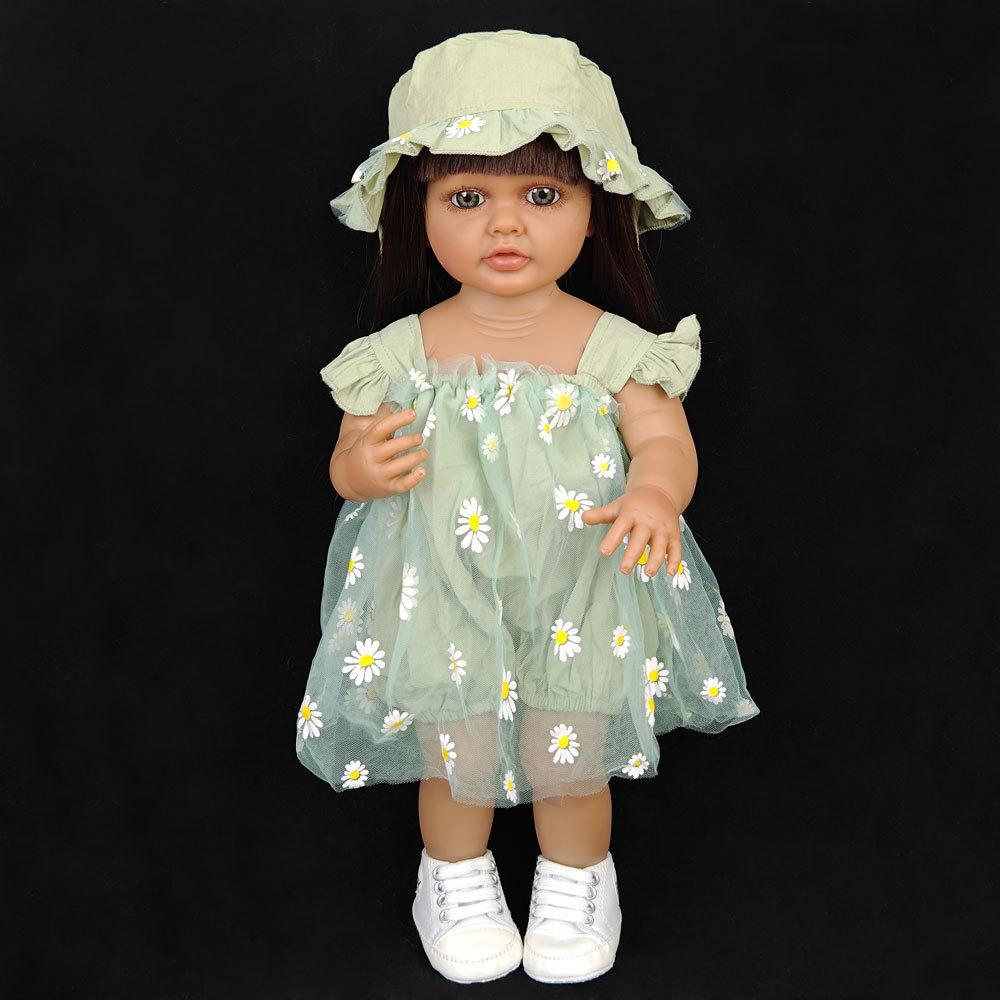 55 см 22 дюйма Реалистичная кукла-младенец Reborn Girl Мягкая силиконовая кукла с длинными каштановыми волосами Реалистичная принцесса Малышка Bebe Подарок на день рождения