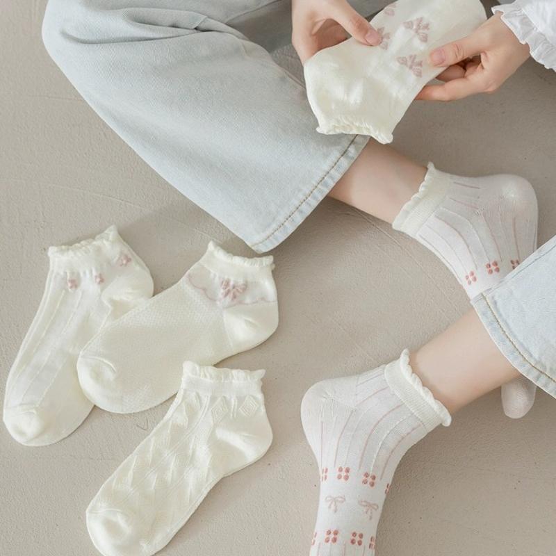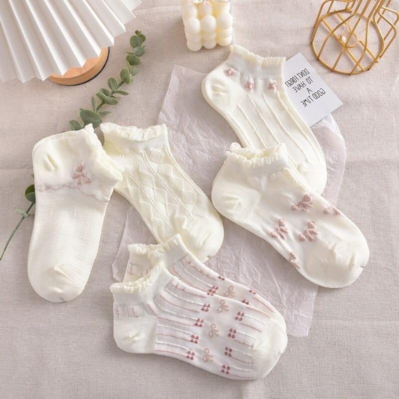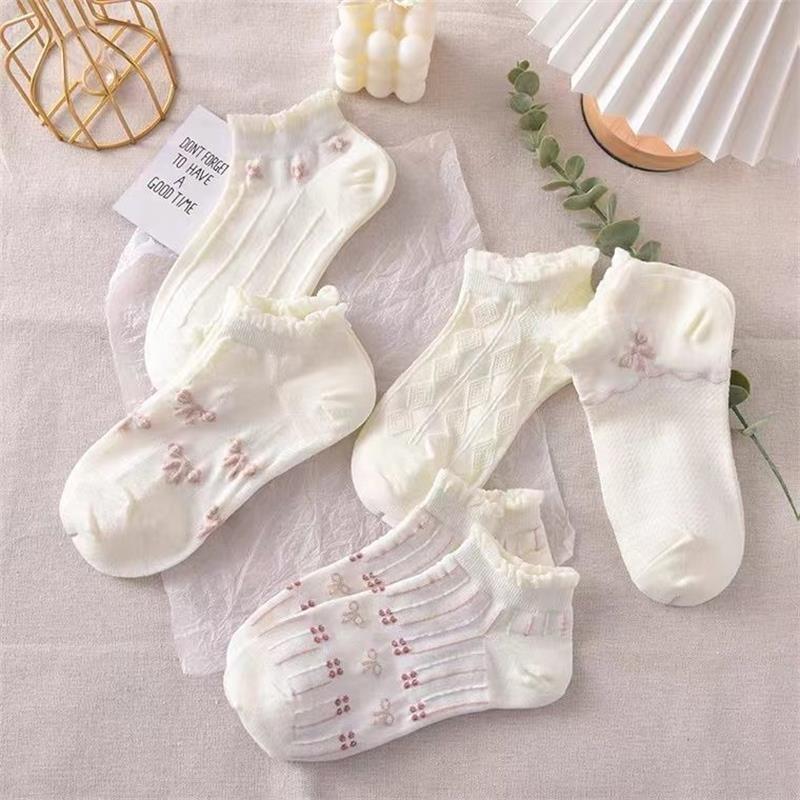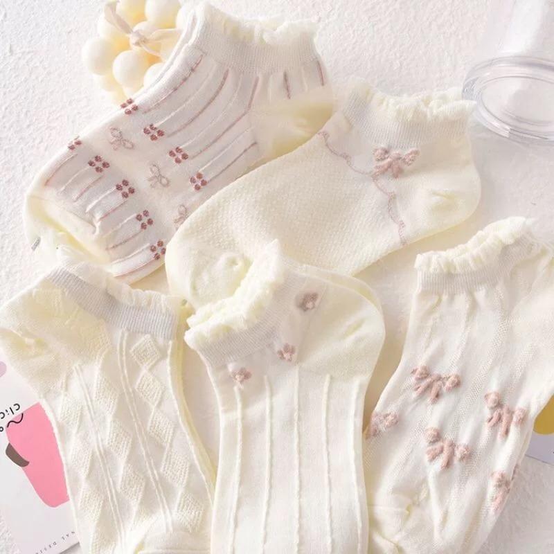 10 шт./ 5 пар женских кружевных коротких летних носков, милые, впитывающие пот, хлопковые, в стиле Лолиты, чулочно-носочные изделия принцессы, высокое качество