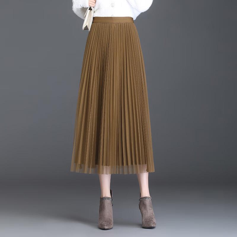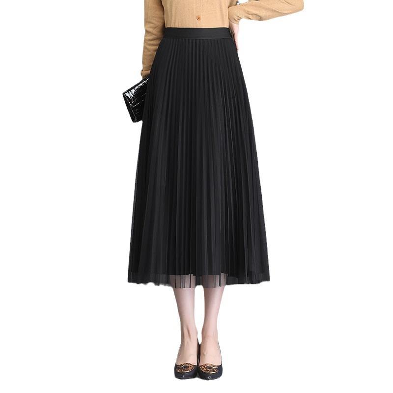 Женская летняя плиссированная однотонная сетчатая длинная юбка с юбкой-словом с обеих сторон, детская весна и осень продвинутый стиль