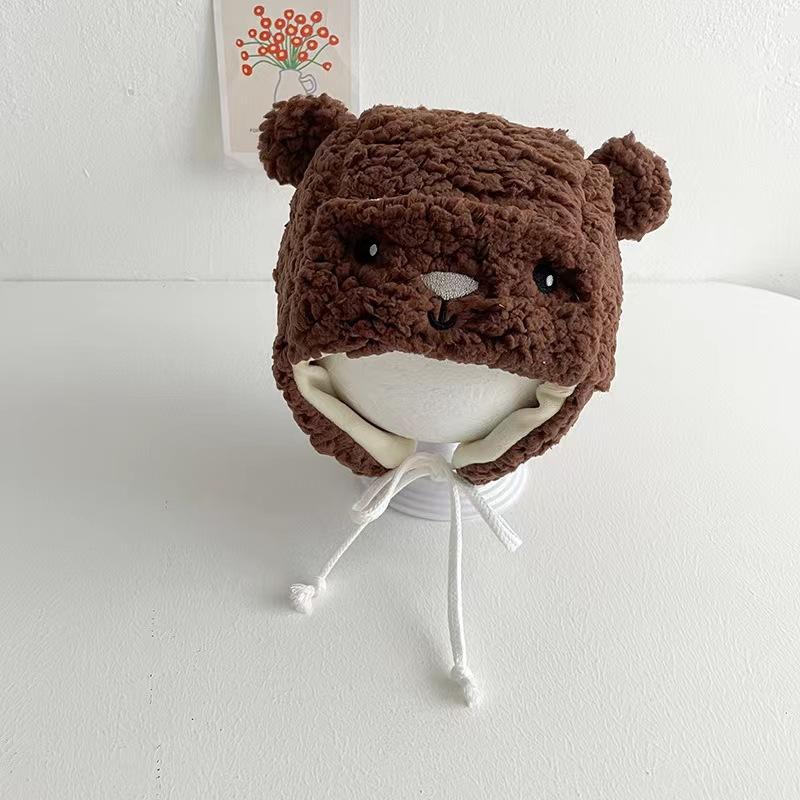1 шт. Милая пушистая теплая шапочка для новорожденных мальчиков и девочек, корейская милая мультяшная шапочка-ушанка с медведем для малышей, теплая зимняя плюшевая шапка